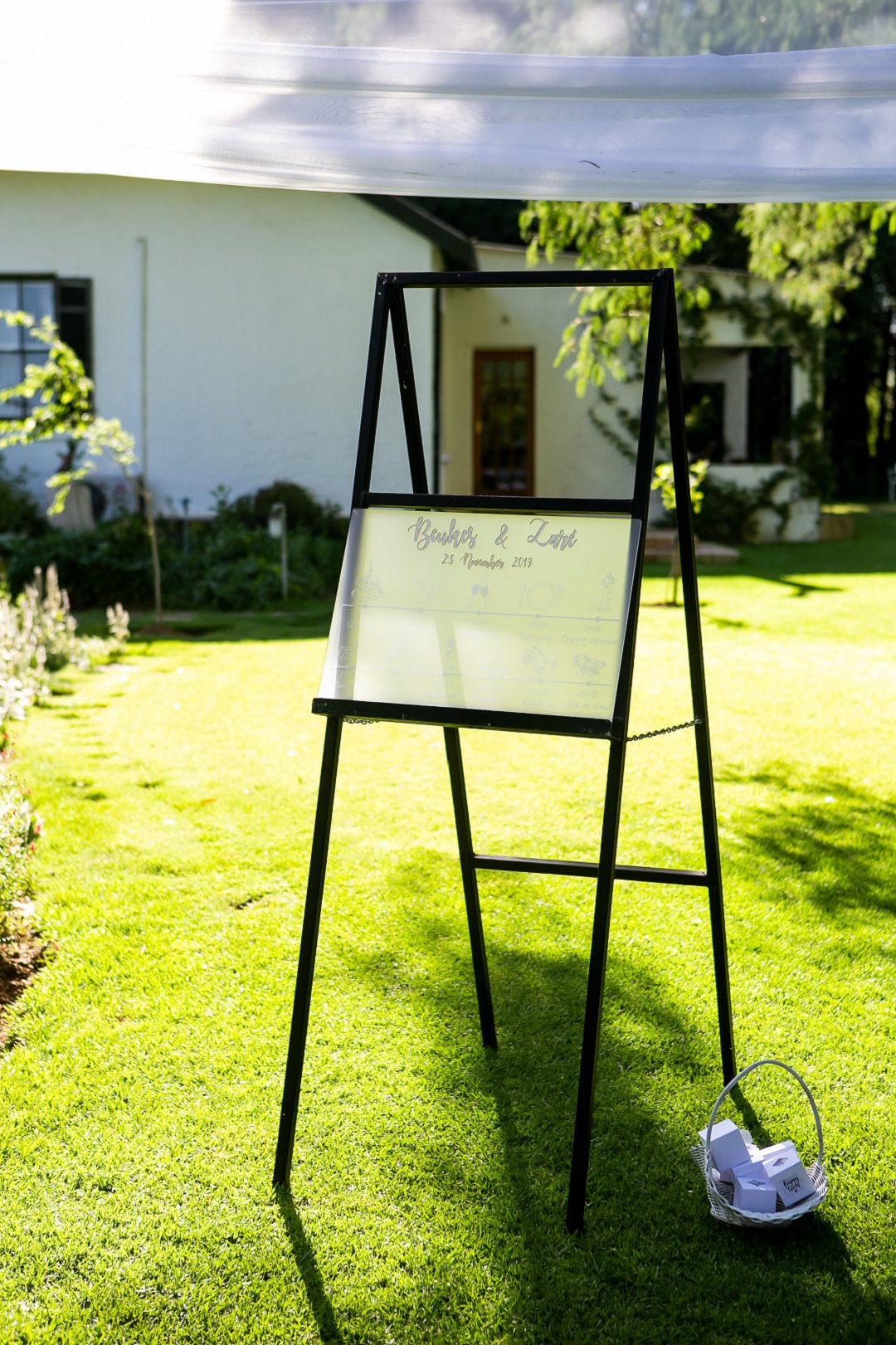 Iets wat vir my baie spesiaal was, is dat my pa vir my die Heuningkoek houtrame gemaak het wat agter die bruilof tafel gestaan het en ook die diamant staalrame by die seremonie.