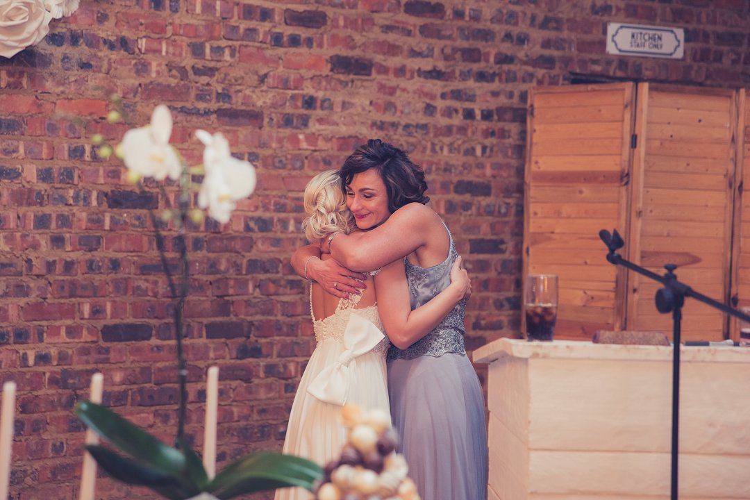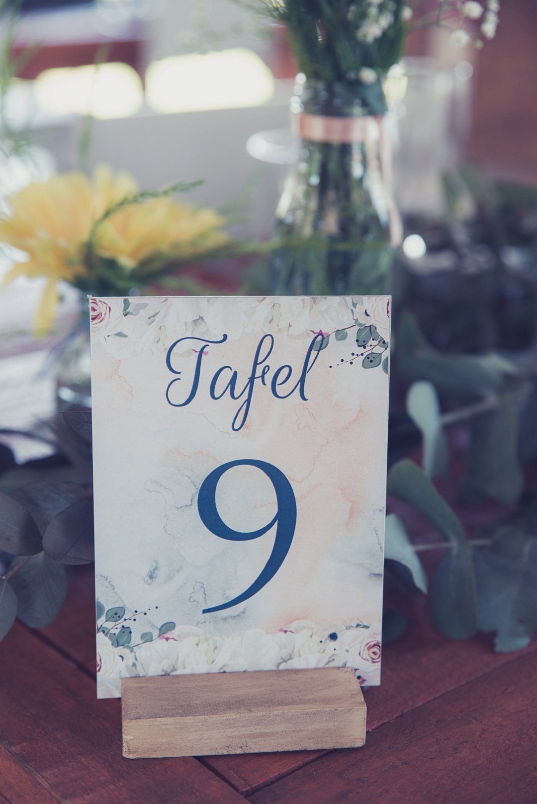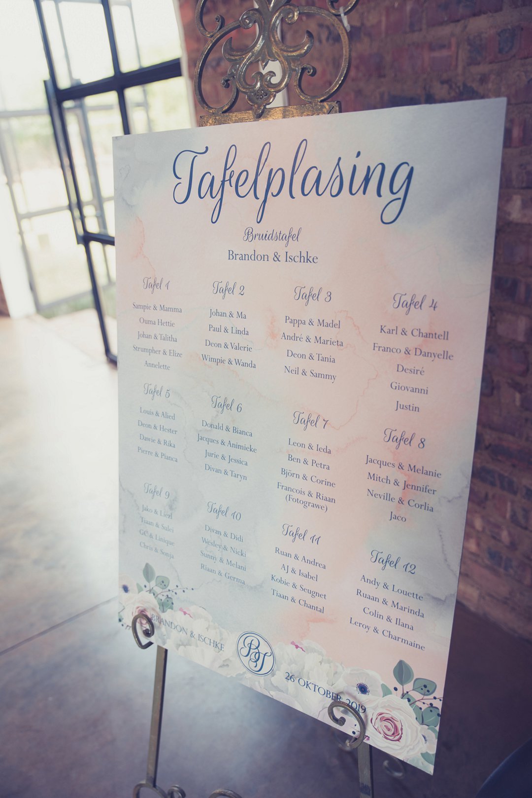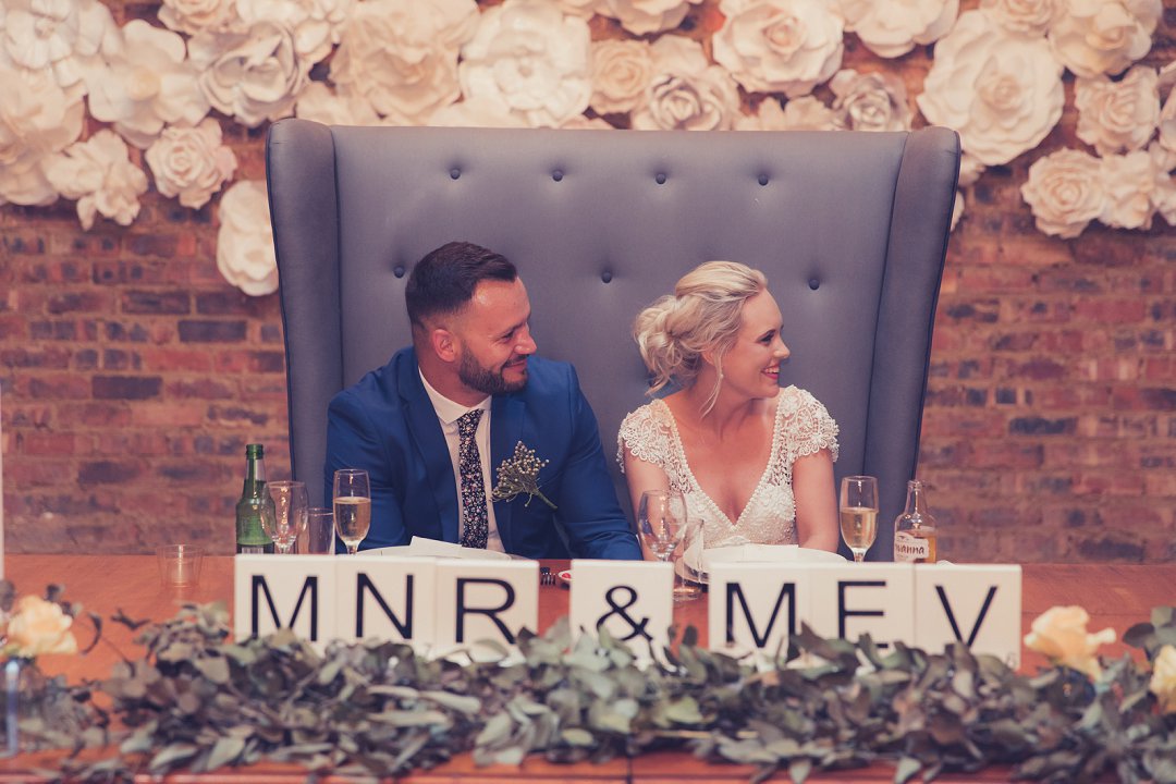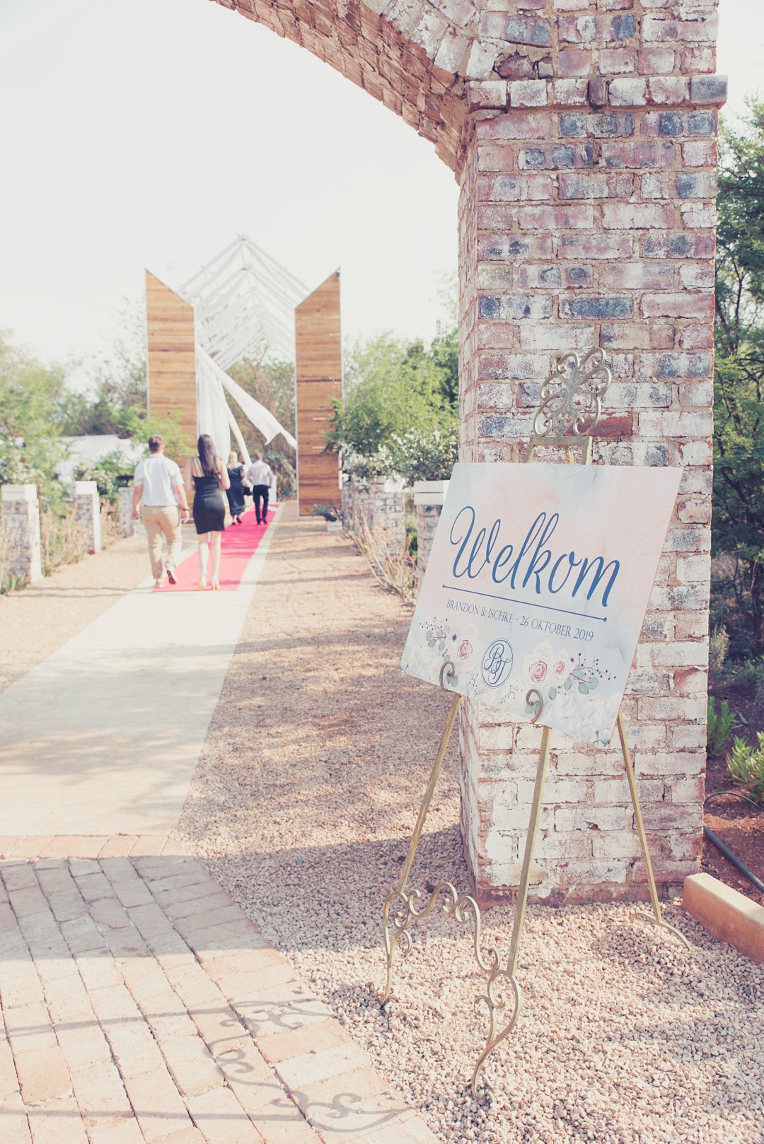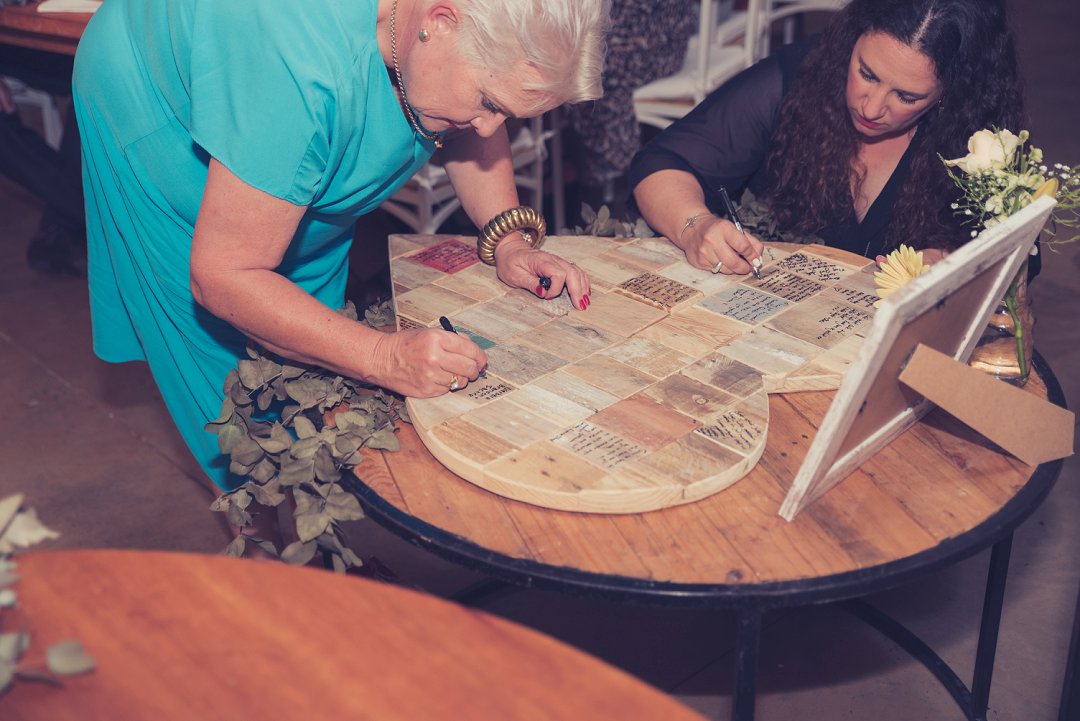 Die rou baksteen mure van die venue en die sagte wit en geel blomme met tikseltjies groen werk perfek. Met die rou van die onafgewerkte baksteen mure en die kontras van die sagte blomme op die tafels en die mooi skryfbehoeftes is dit ʼn wen kombinasie.