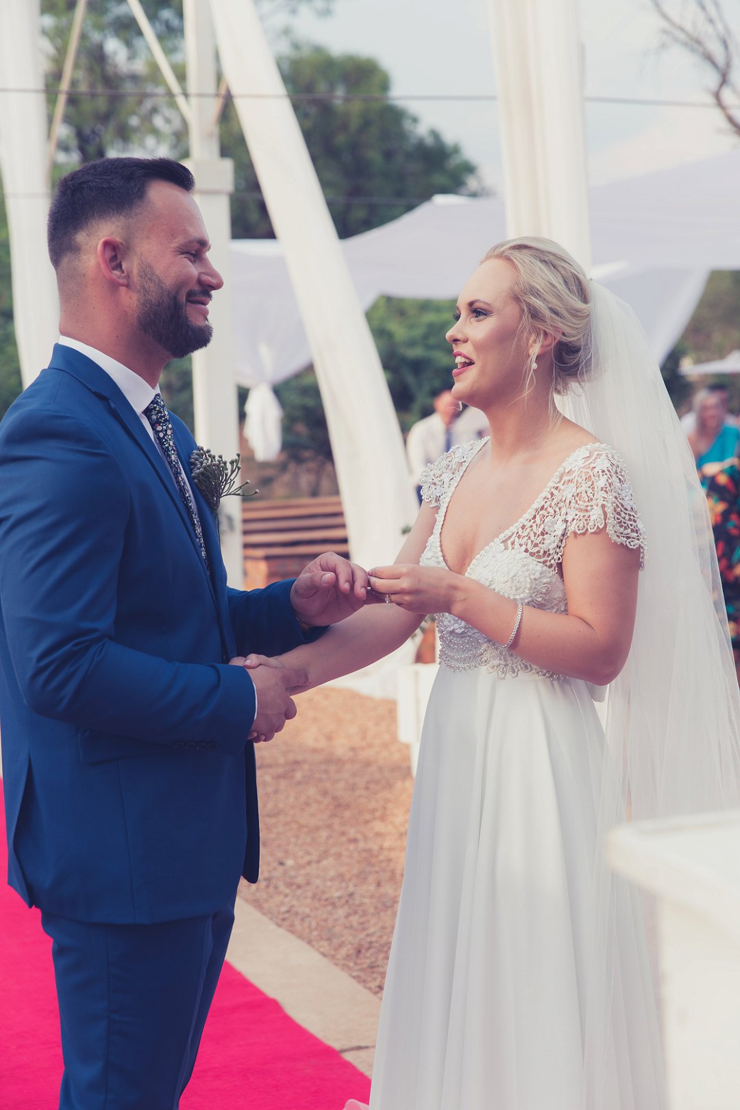 Vir my was dit ʼn onbeskryflike oomblik toe ek in die kapel op die rooi tapyt by die gangetjie afstap en sien hoe my aanstaande man met soveel liefde en omgee in sy oë na my kyk. In daardie oomblik kon die wêreld maar vergaan! Ons fotosessie na die “I do’s” is ook iets wat ek altyd sal koester, omdat dit uiteindelik die herinneringe is wat teen die mure hang.