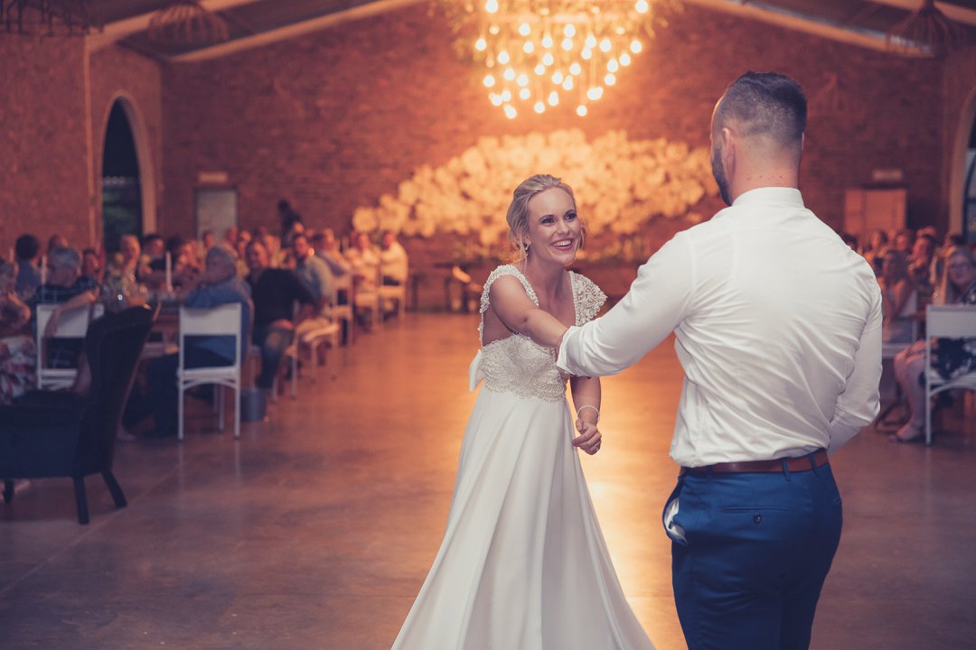 Die bruidspaar se eerste dans was vir Brandon baie spesiaal, want hy kon sy bruid diep in die oë kyk. Ons het die dansbaan op aKING se “You & I” geopen. Dit was ook vir hom ʼn spesiale oomblik om sy liefde aan sy pasgetroude vrou oor ʼn mikrofoon voor die gaste te verklaar.