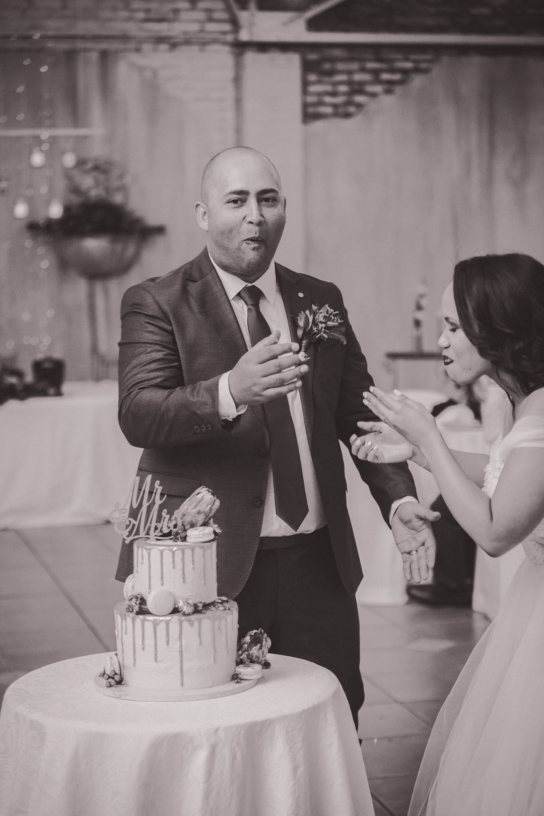 Ons wou graag ʼn gesellige, tog ruim tuin-troue hê. Simondium Lodge het in ons spesifieke behoeftes voorsien. Ons wou hê dat die troue rustiek en gesellig moet wees, met kersliggies en proteas om natuurlike buitelug-elemente te bied.