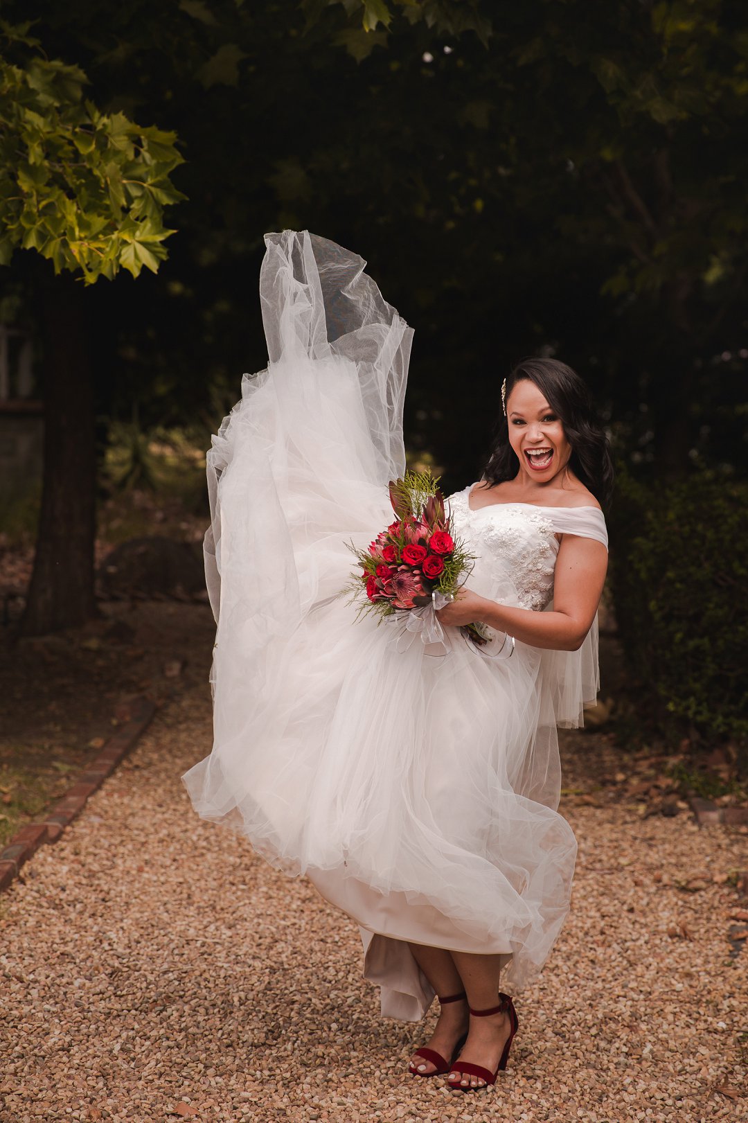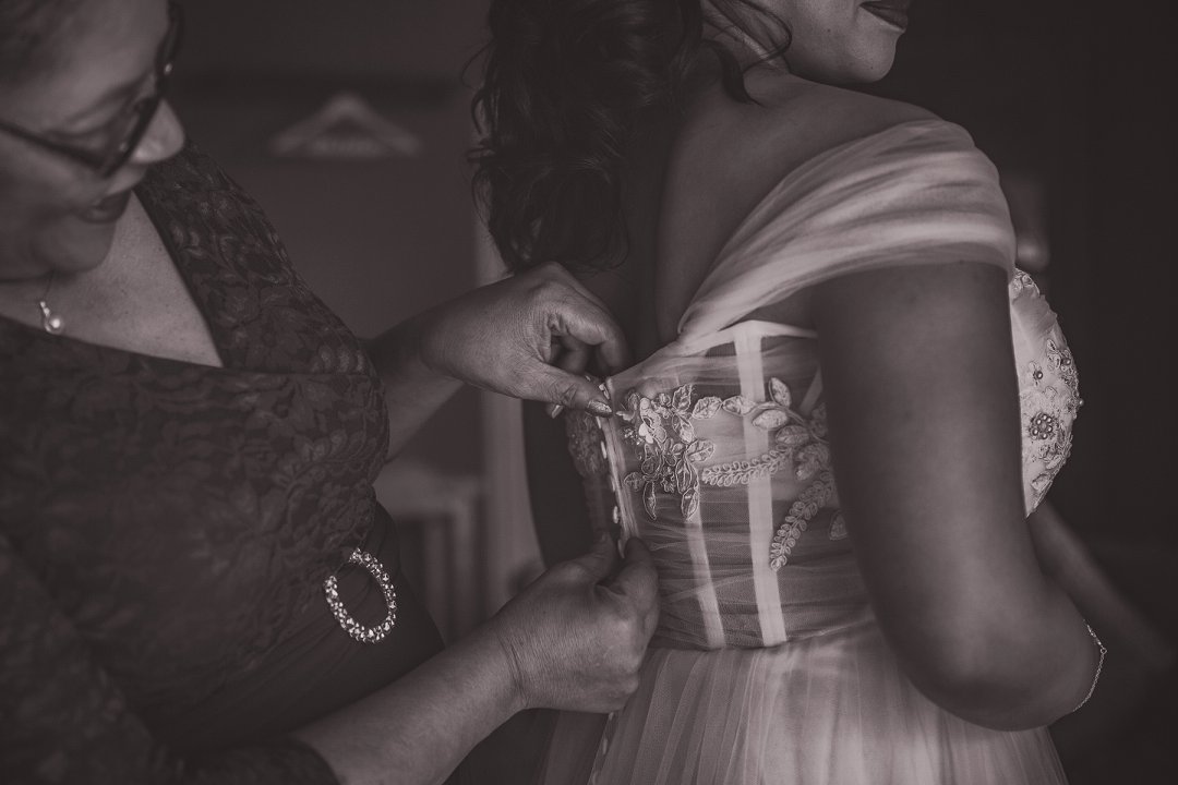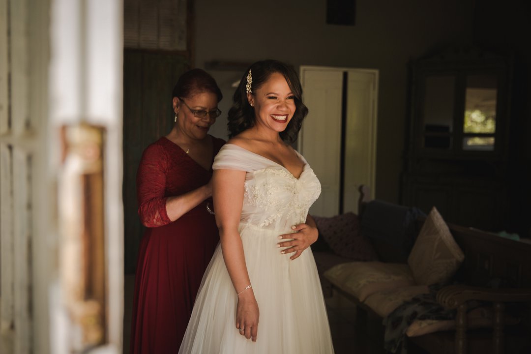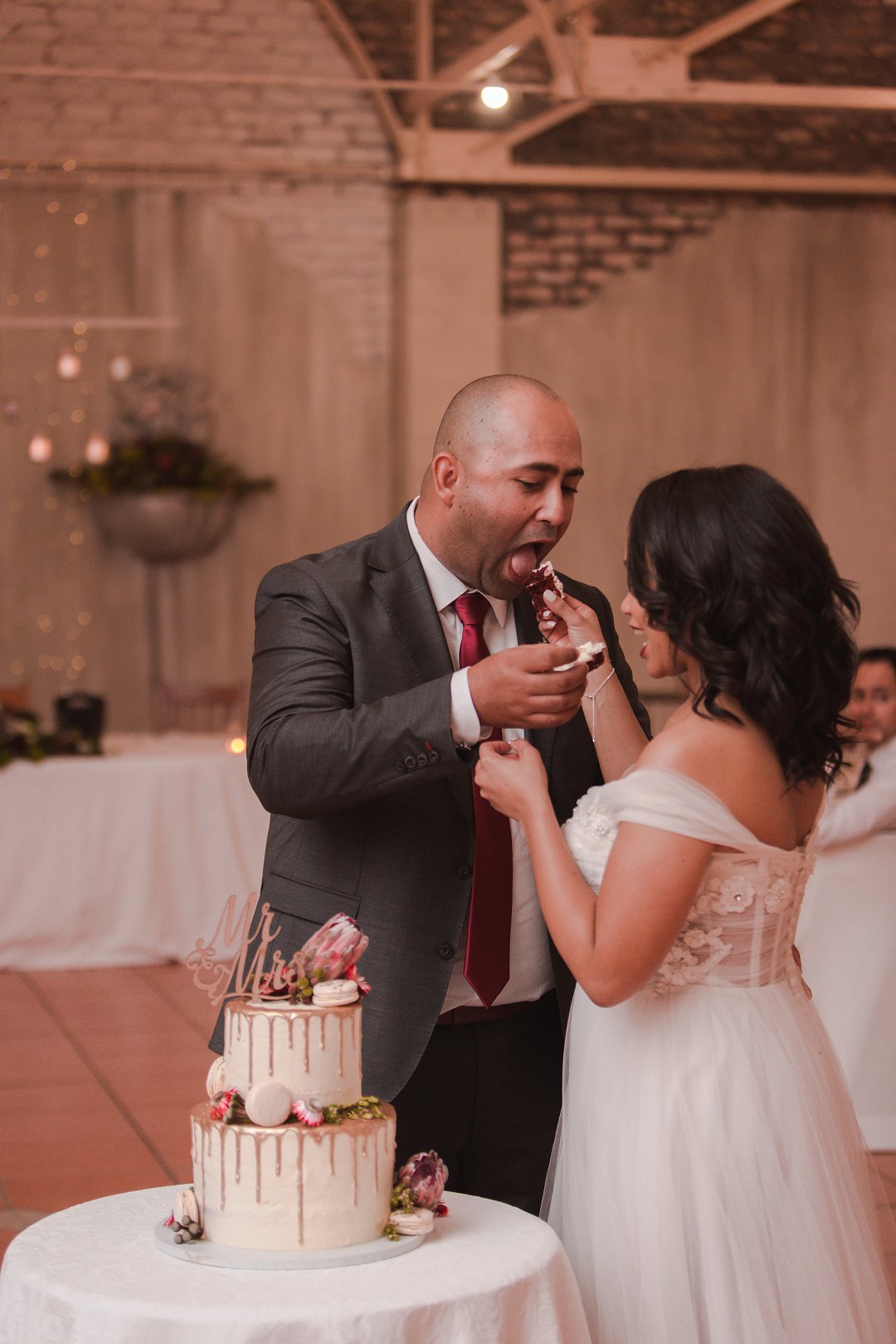 Een van my beste vriende het rooiwyn op my trourok laat val wat aanvanklik rampspoedig gelyk het, maar gelukkig kon ons die vlek verwyder met ʼn bietjie witwyn; ʼn truuk wat ons fotograaf ons geleer het!