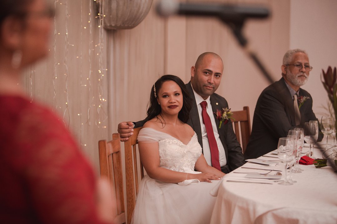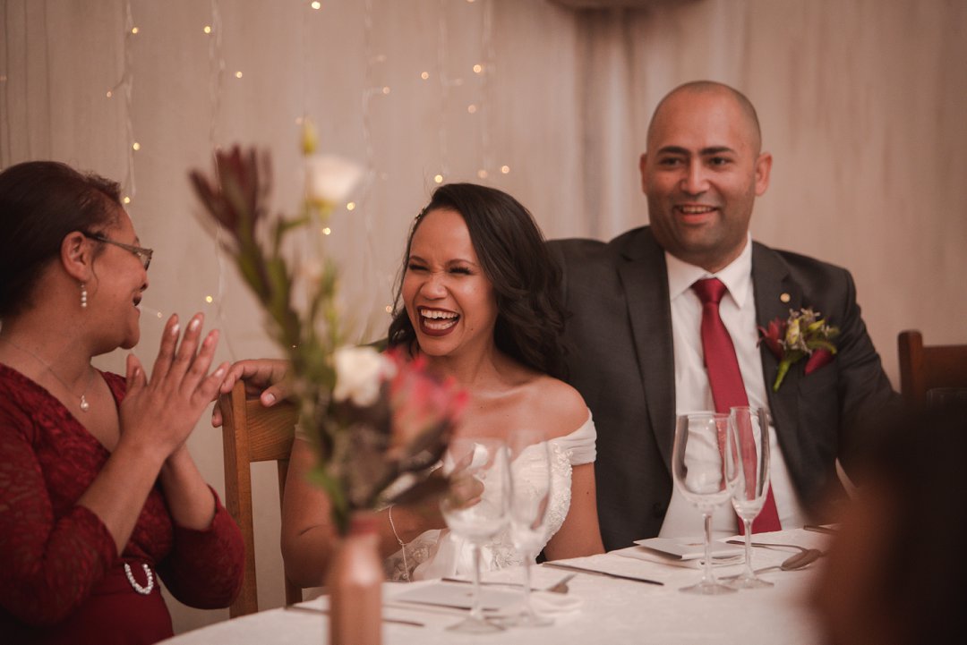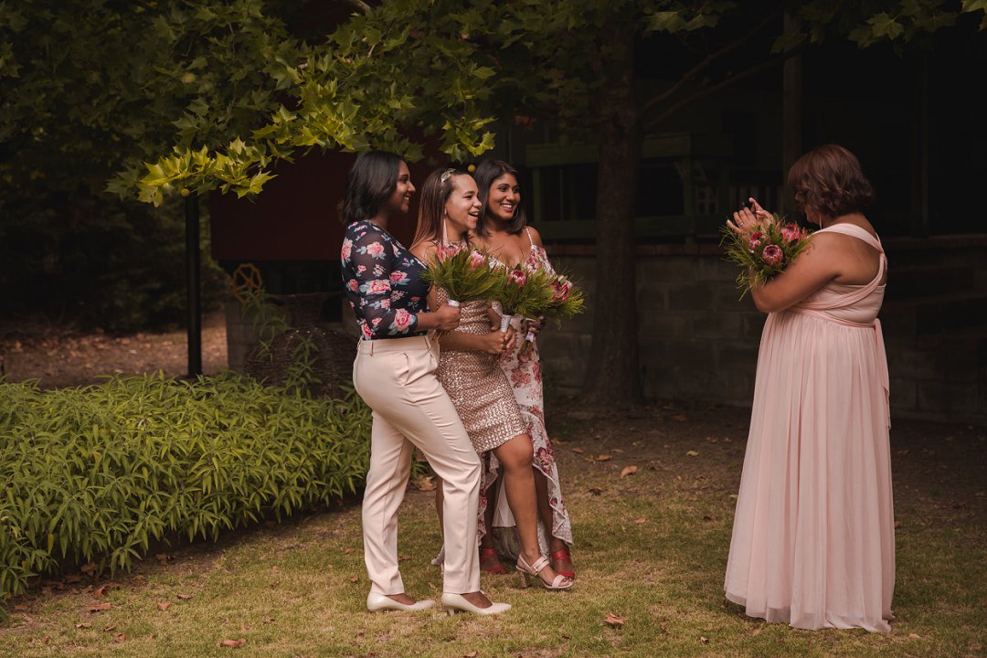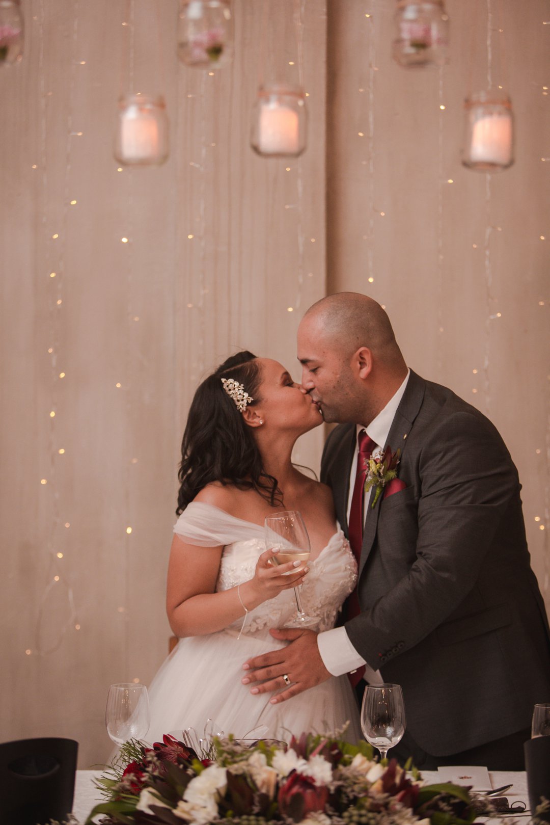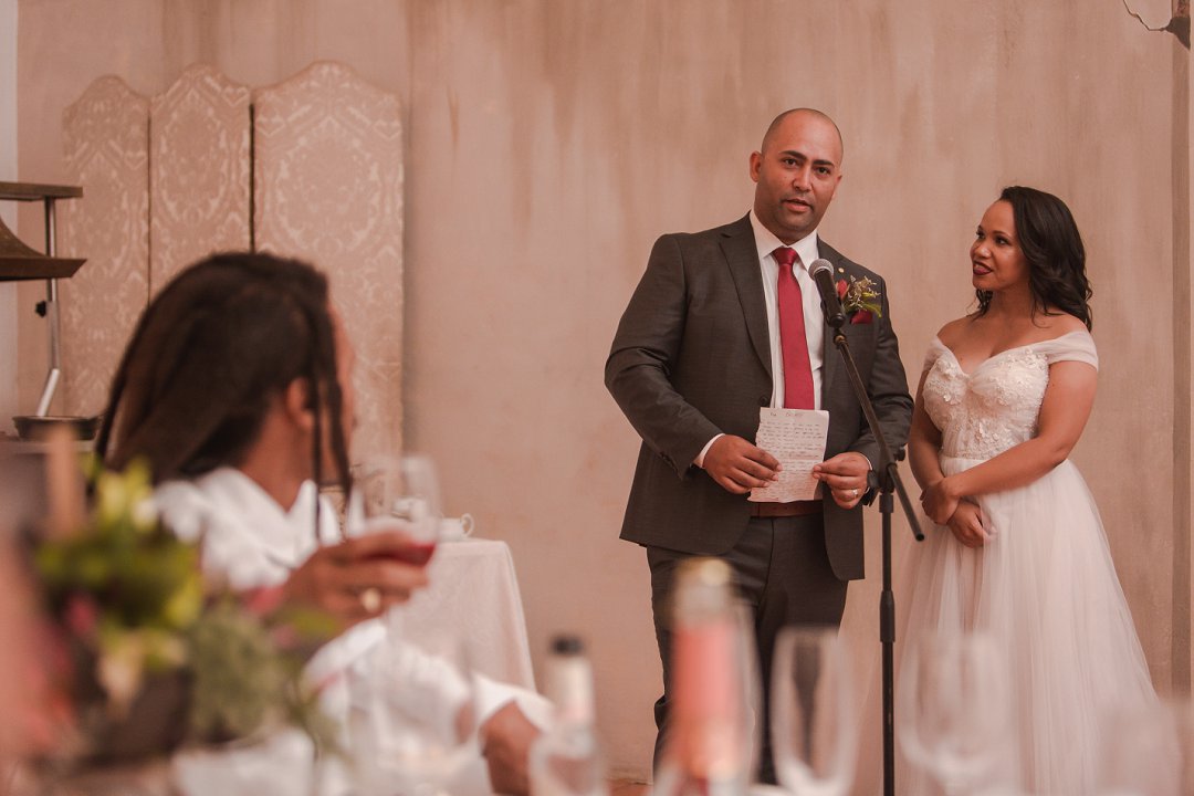 Ons wou graag ʼn gesellige, tog ruim tuin-troue hê. Simondium Lodge het in ons spesifieke behoeftes voorsien. Ons wou hê dat die troue rustiek en gesellig moet wees, met kersliggies en proteas om natuurlike buitelug-elemente te bied.