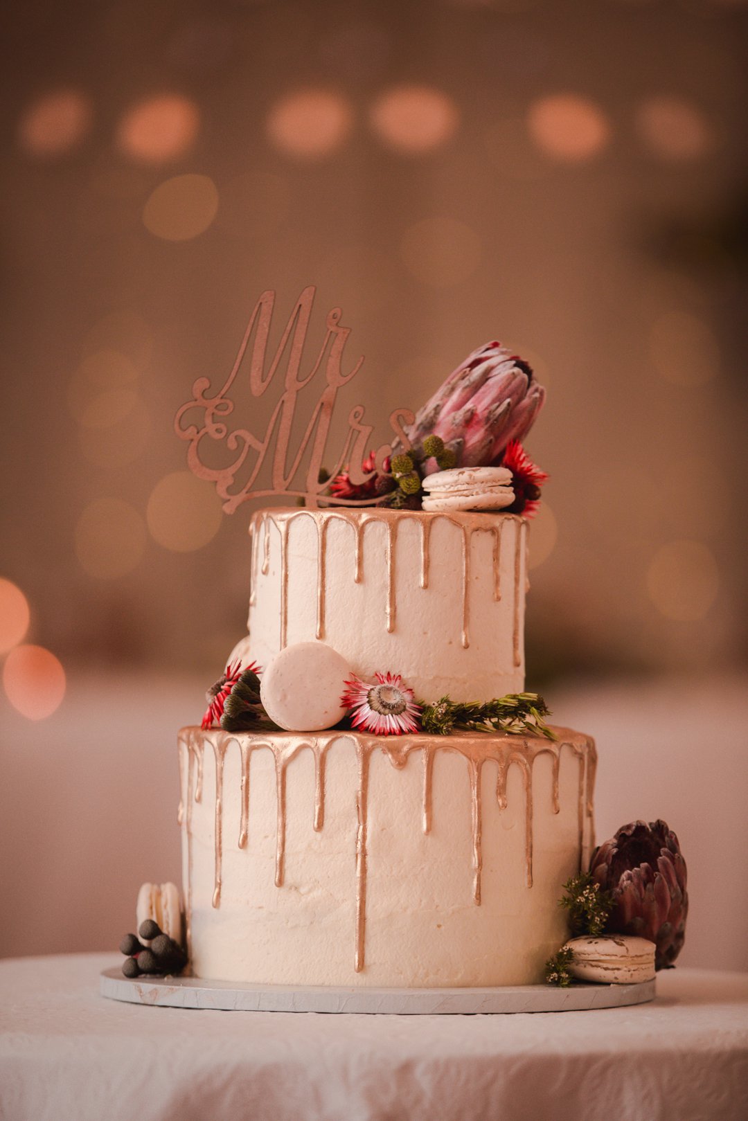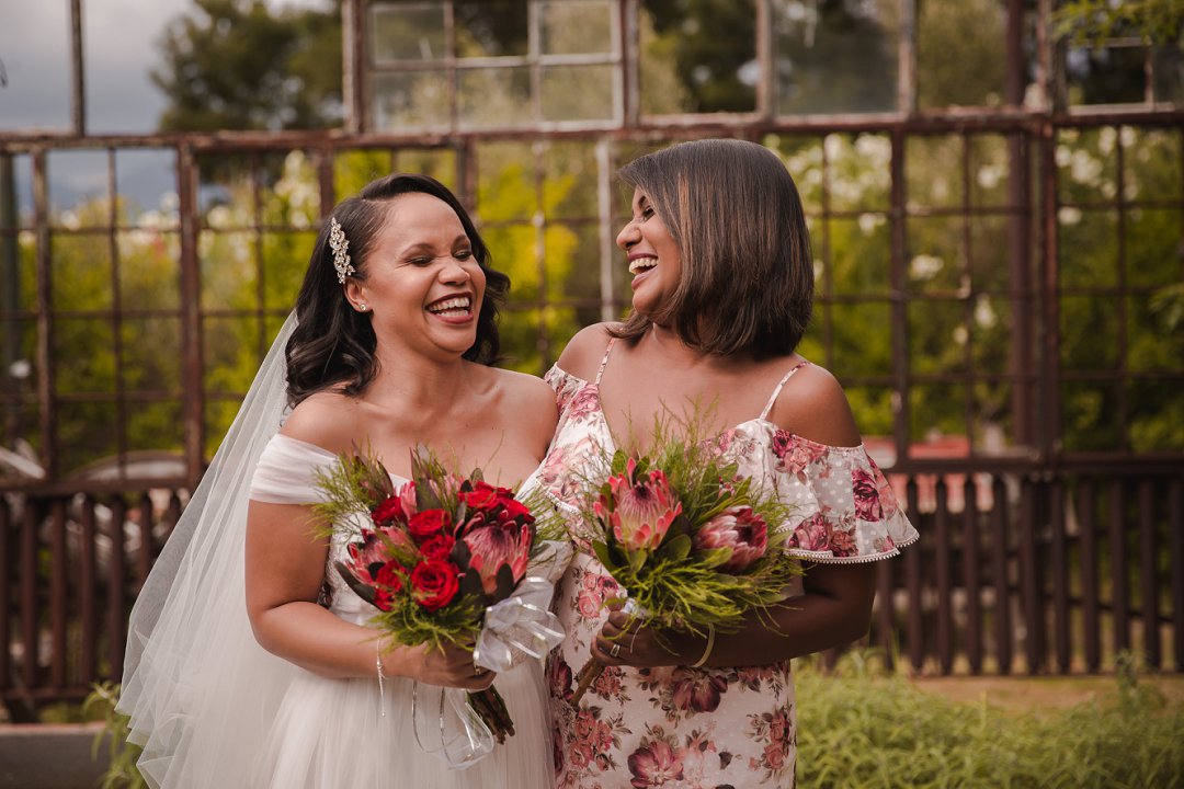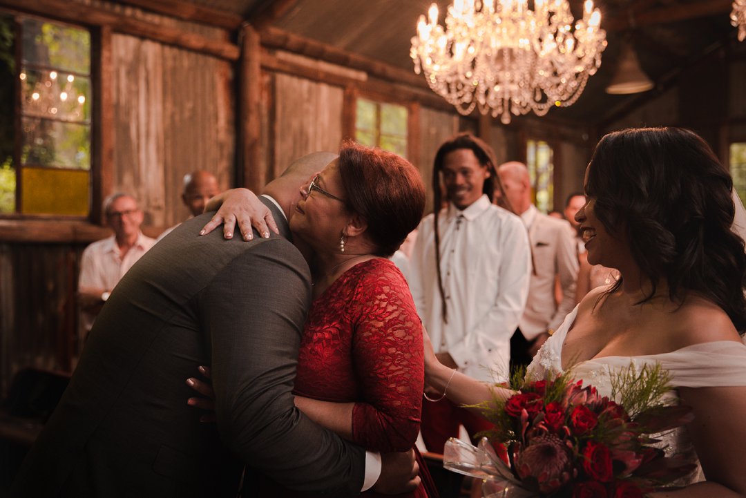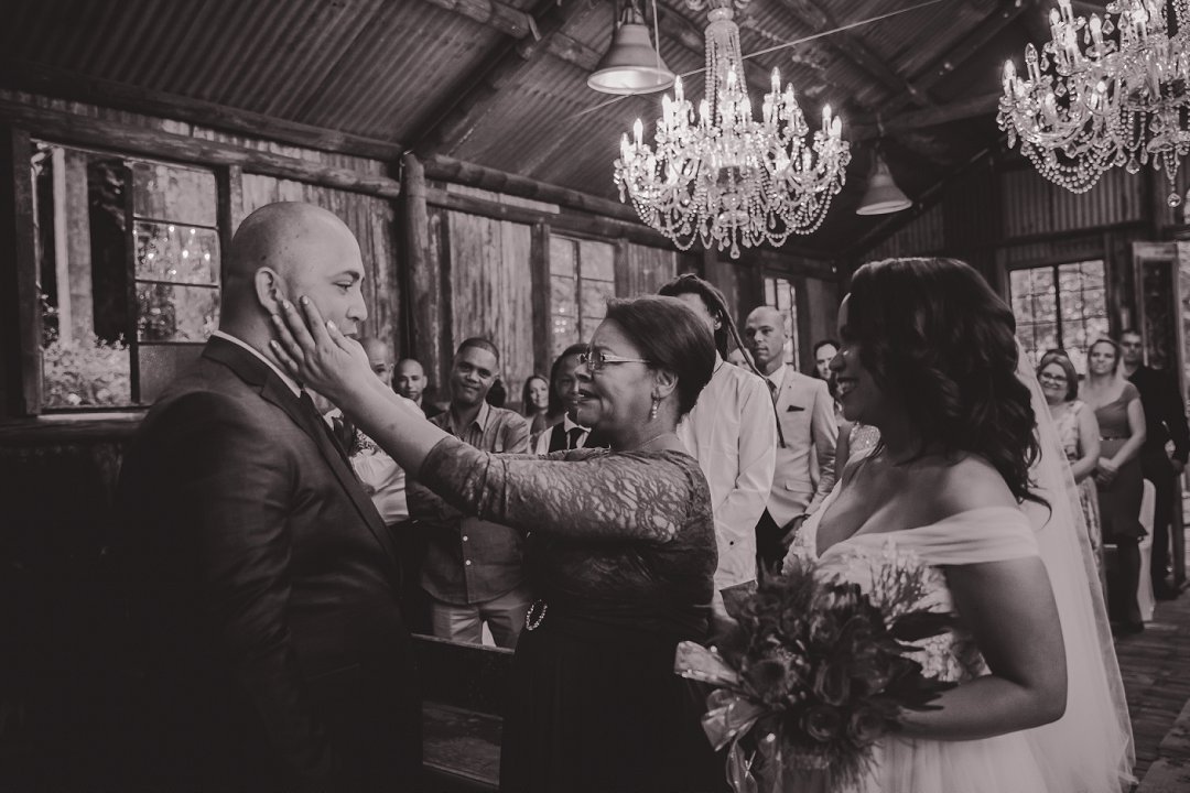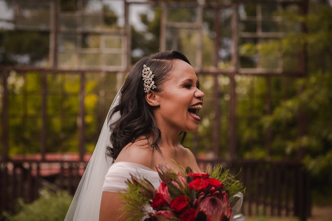 Ons wou graag ʼn gesellige, tog ruim tuin-troue hê. Simondium Lodge het in ons spesifieke behoeftes voorsien. Ons wou hê dat die troue rustiek en gesellig moet wees, met kersliggies en proteas om natuurlike buitelug-elemente te bied.