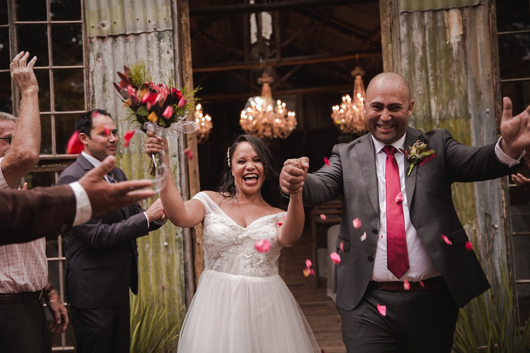 Rol af vir foto’s van Barry en Jody se gesellige rustieke troudag. Hulle deel wenke hoe om seker te maak dat jou troudag nie tot ʼn finansiële verknorsing lei nie!