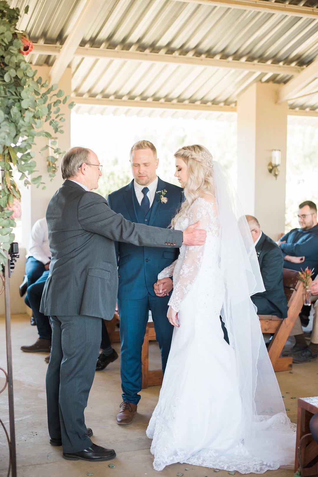 Ons het ʼn venue gesoek wat nie te droog voorkom in die winter nie. Op die Protea plaas was daar kleure in oorvloed, wat nie sommer in ʼn winter troue gesien word nie, en dit het perfek gepas by ons protea tema.