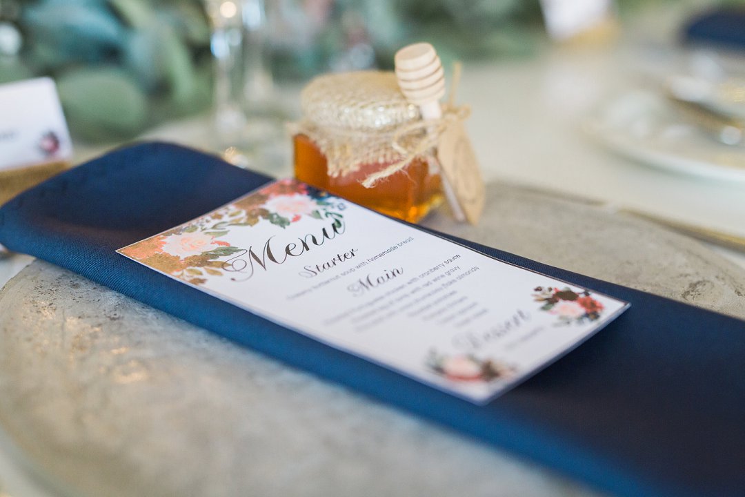 Die paartjie se dekor was ook nie oortollig nie, tog het die kleurskema ʼn verwelkomend en snoesige gevoel tot dit gehad. Die rooi van die strooimeisie rokke en vlootblou van Zane en sy strooijonkers se pakke het mooi deur getrek na die kleurskema van die troudekor.