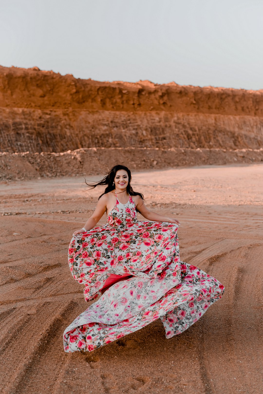 Die plek waar ons foto’s geneem het is op ʼn plaas en dit beeld so mooi uit hoe lief ons vir die buitelewe is. Alles van ons is baie eenvoudig, maar die blomme rok het ʼn bietjie kleur en lewe ingebring en was daardie ‘wow’-faktor.