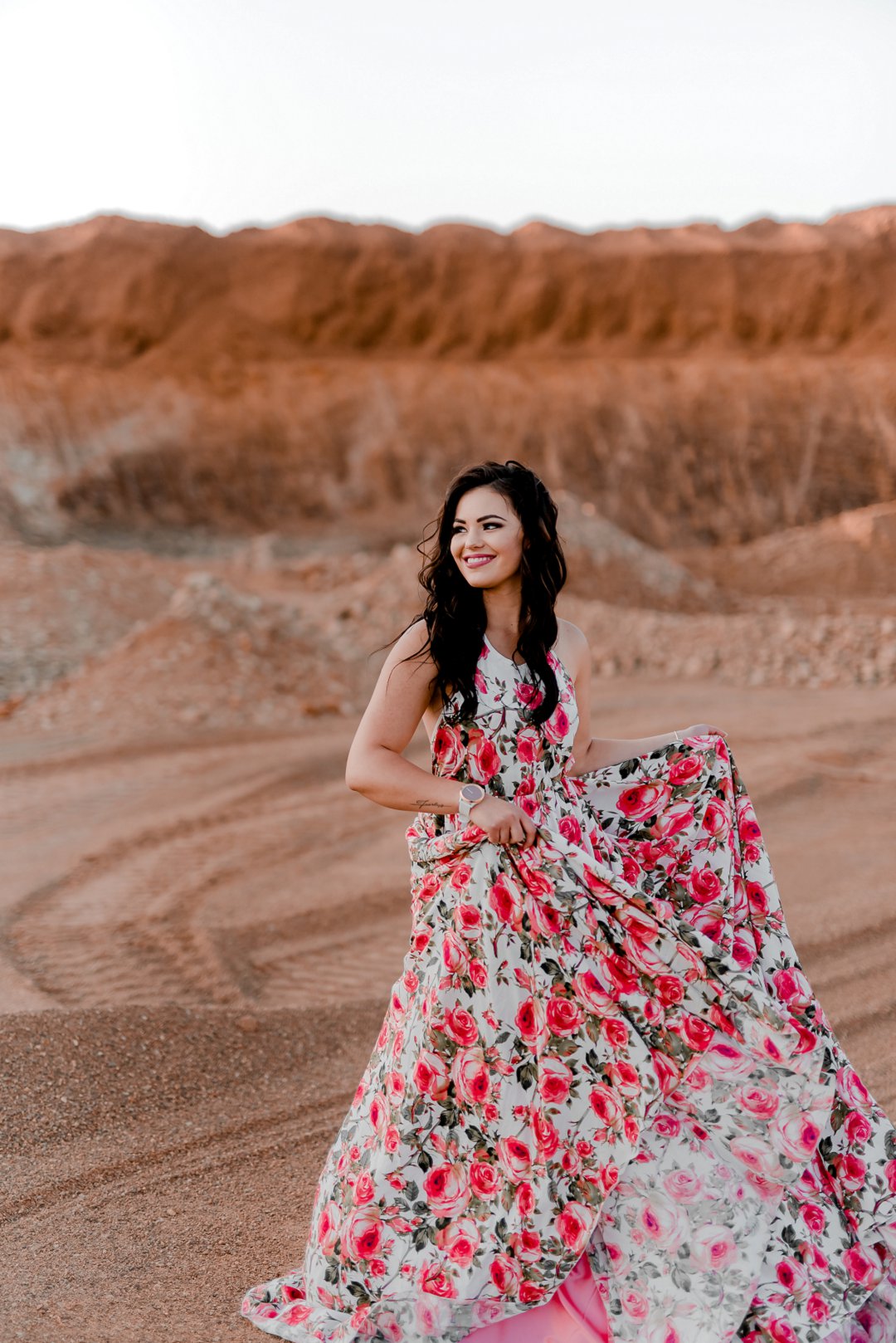 Die plek waar ons foto’s geneem het is op ʼn plaas en dit beeld so mooi uit hoe lief ons vir die buitelewe is. Alles van ons is baie eenvoudig, maar die blomme rok het ʼn bietjie kleur en lewe ingebring en was daardie ‘wow’-faktor.