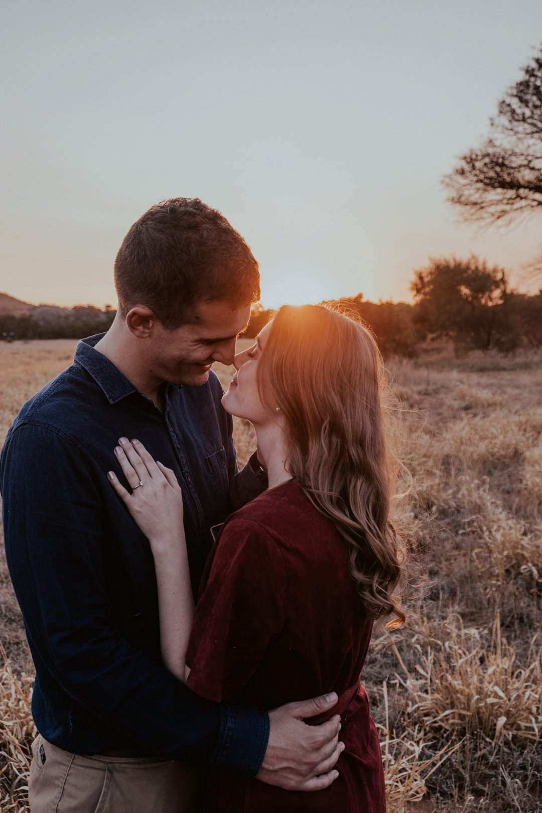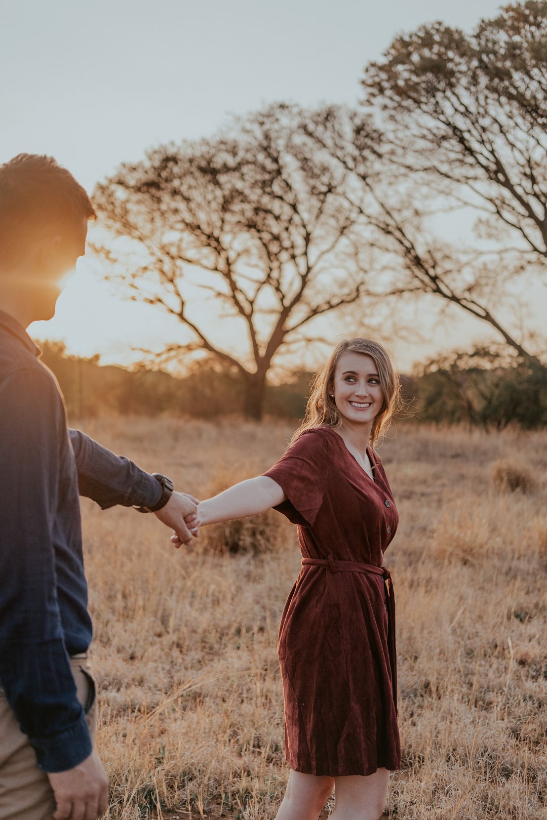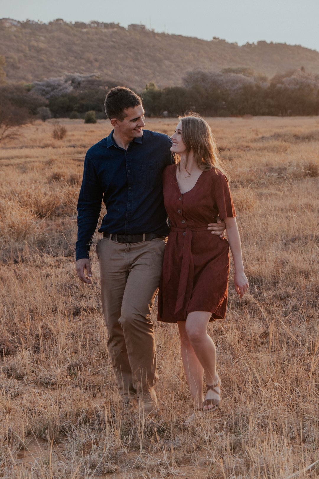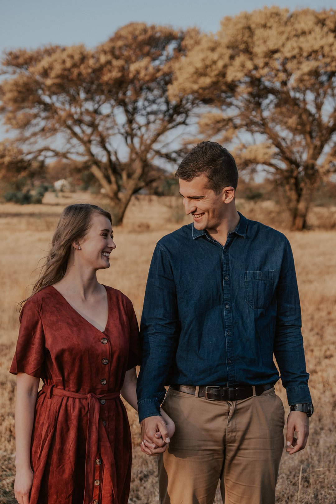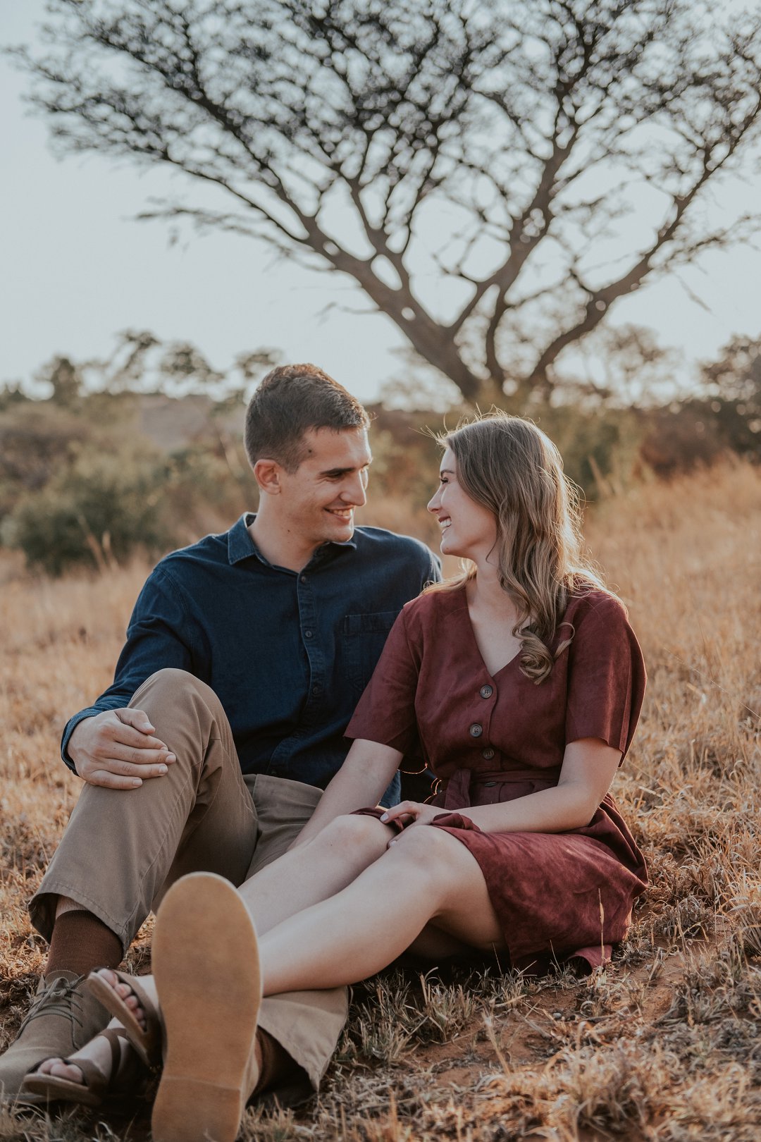 Ons is beide natuur liefhebbers en hou van die buitelewe. Sonsondergang is ook ons gunsteling tyd van die dag. Ons wou graag foto’s gehad het waarin ons gemaklik en verlief kan voorkom, maar wat ook elegant is en die kleiner /skelm detail vasvang van ons verhouding.
