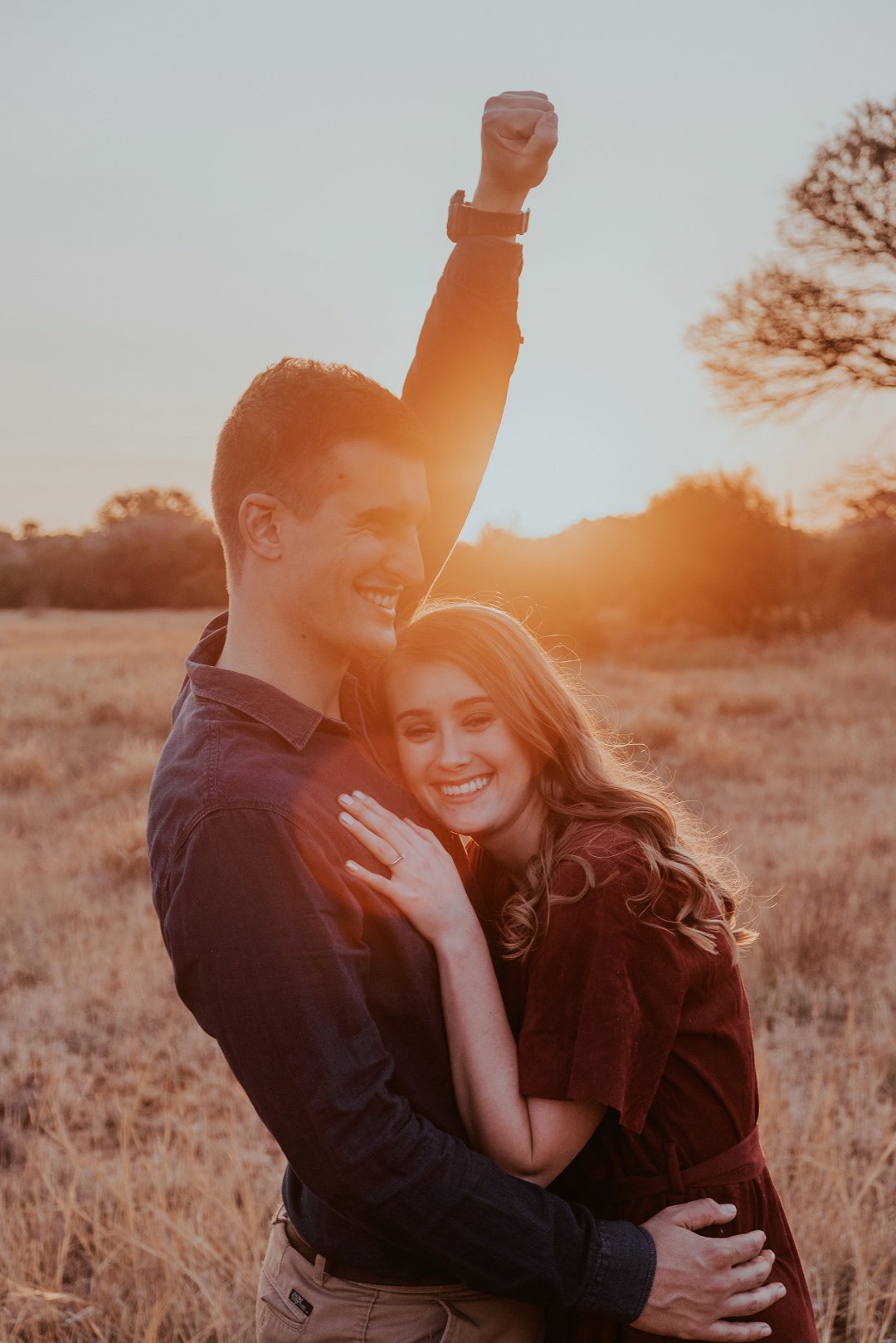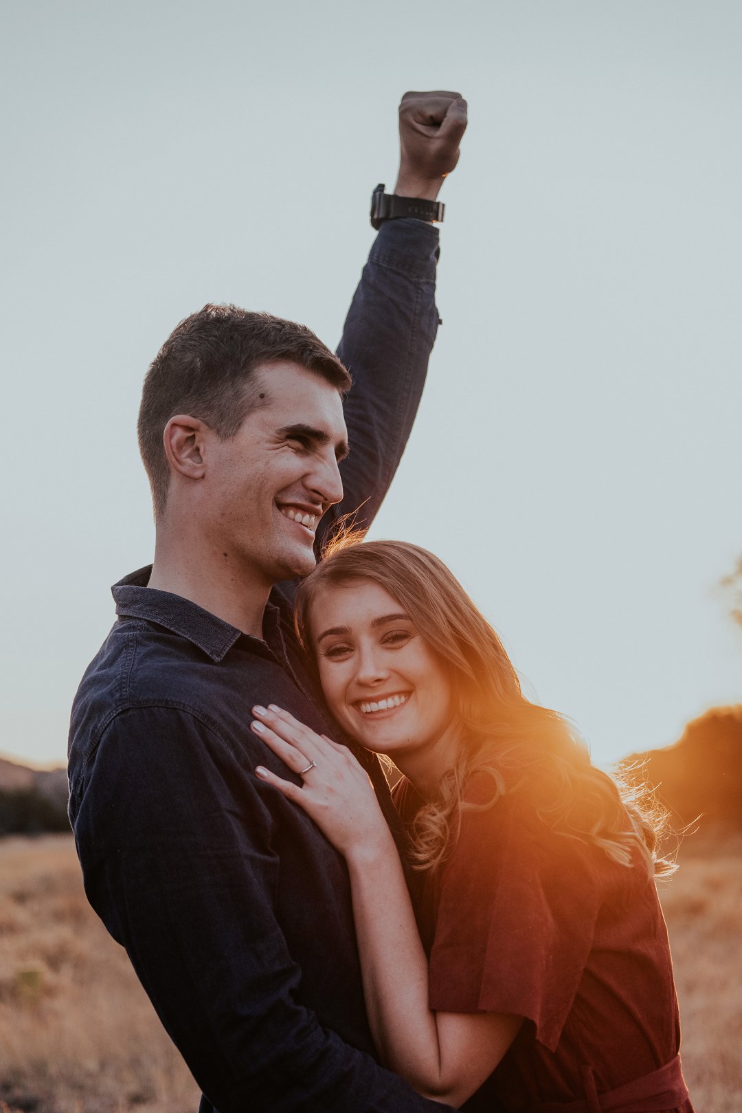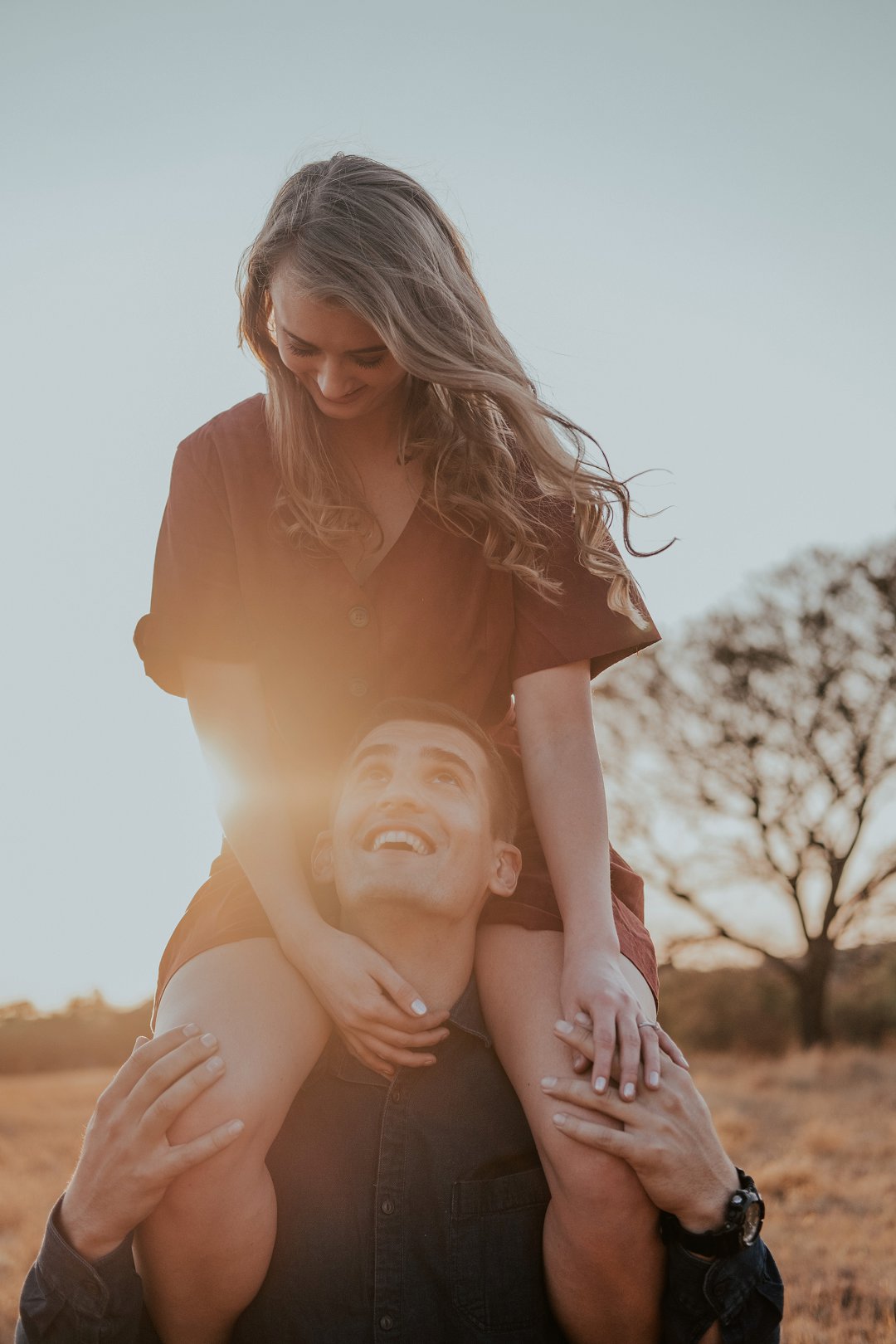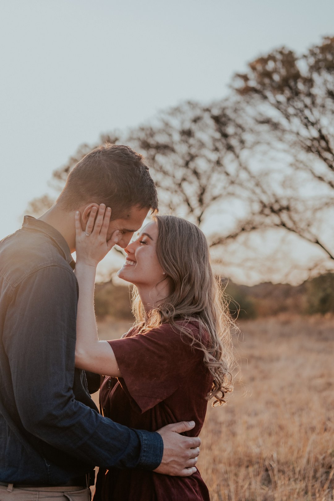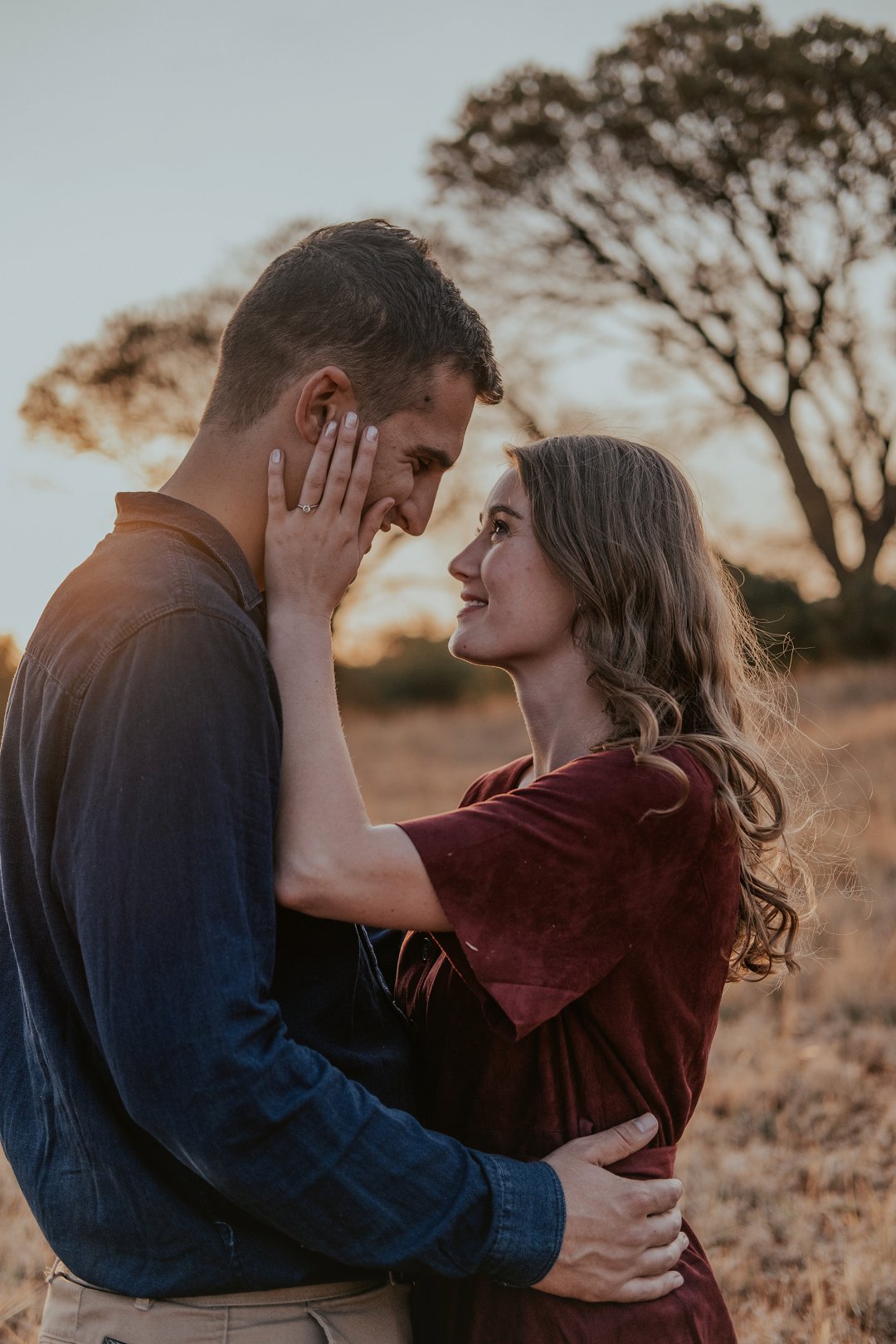 Ons is beide natuur liefhebbers en hou van die buitelewe. Sonsondergang is ook ons gunsteling tyd van die dag. Ons wou graag foto’s gehad het waarin ons gemaklik en verlief kan voorkom, maar wat ook elegant is en die kleiner /skelm detail vasvang van ons verhouding.