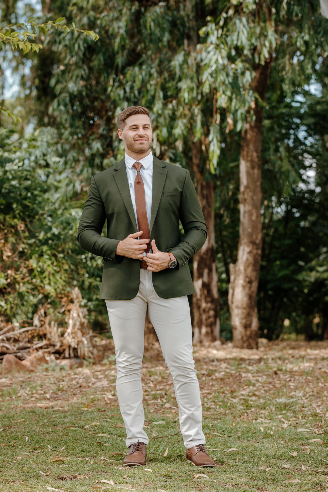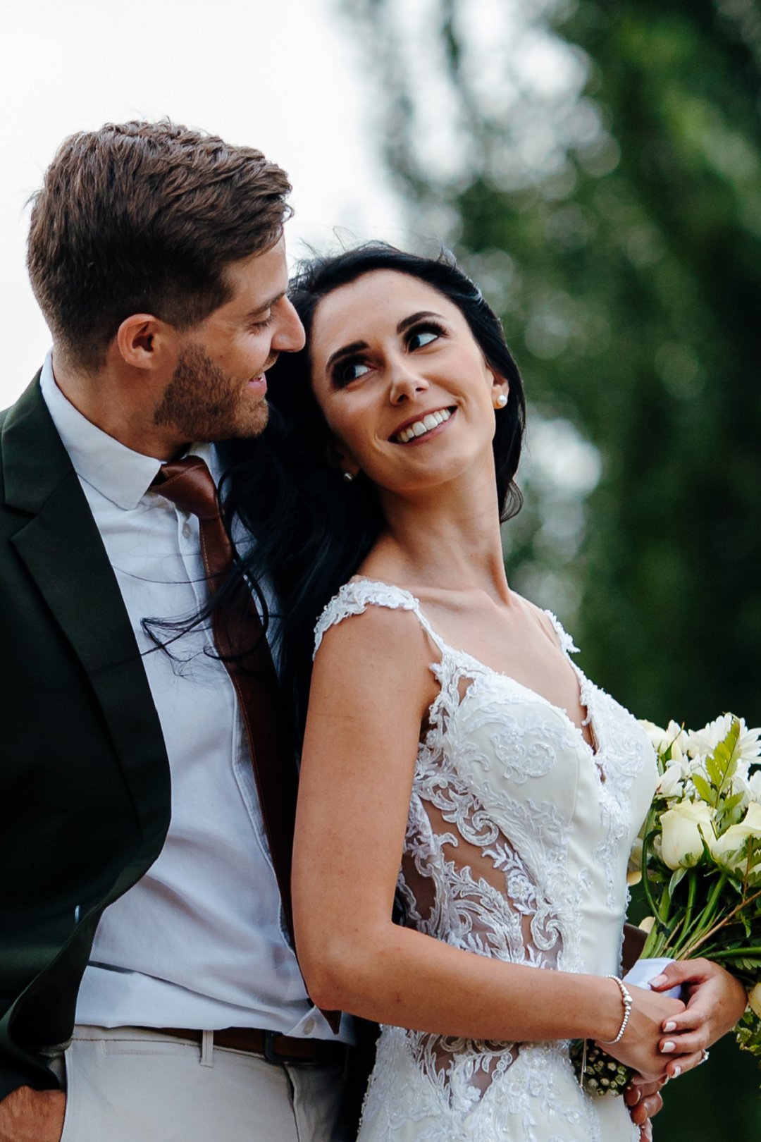 Dit was vir ons baie belangrik om ‘n stylvolle en elegante troue te hê, asook ‘n troue wat by ons persoonlikhede pas. My ‘Blue by Enzoani Marquise’ trourok en Naudé se olyfgroen en roomkleurige uitrusting het perfek by ons styl en persoonlikhede gepas. Dit was stylvol, maar tog gemaklik.