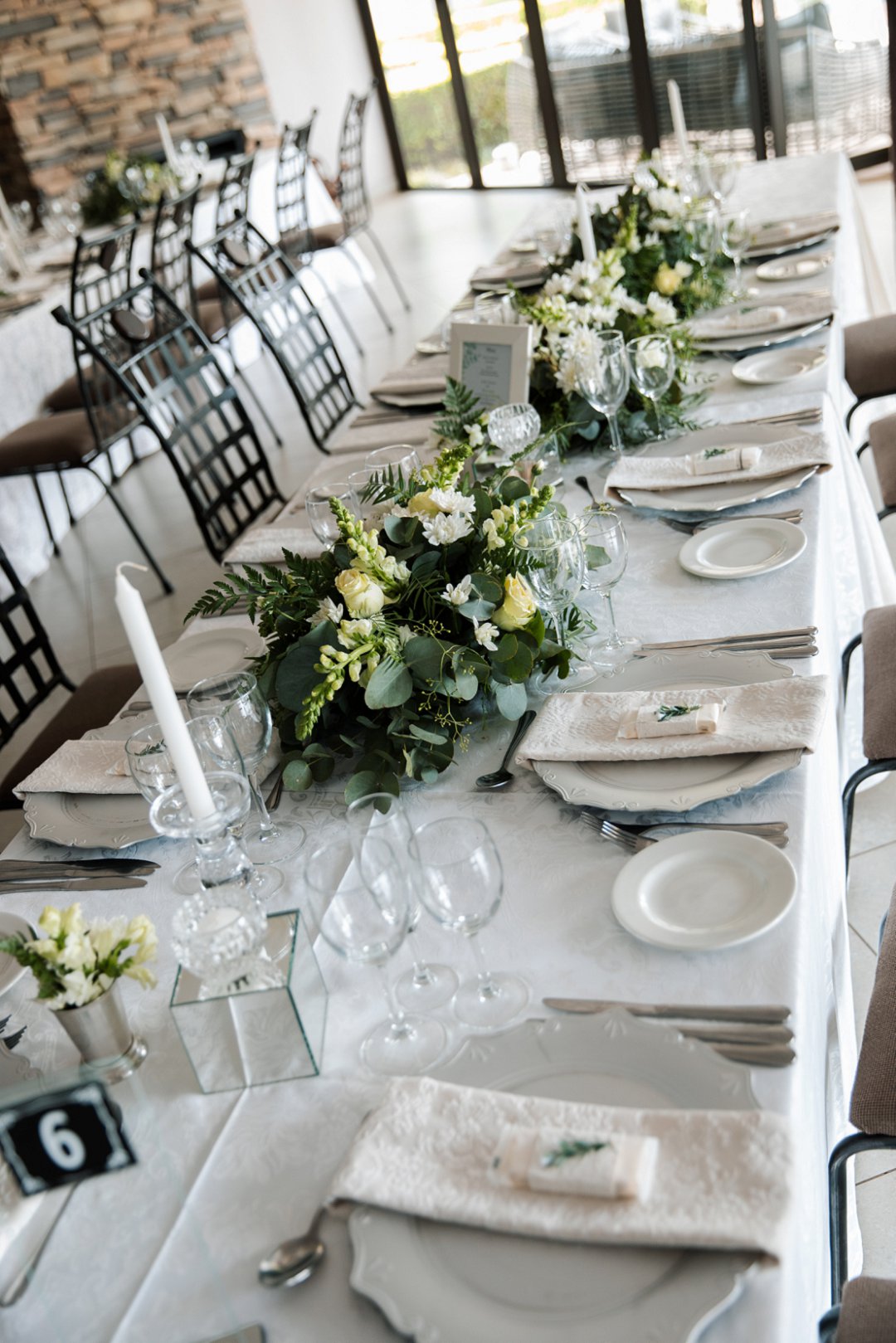 Oxbow Country Estate se gras groen tuine en klassieke boustyl het ons dadelik bekoor. Dit was so eenvoudig, maar so stylvol. Ons het daarom besluit om ons dekor ook net eenvoudig, wit en groen te maak.