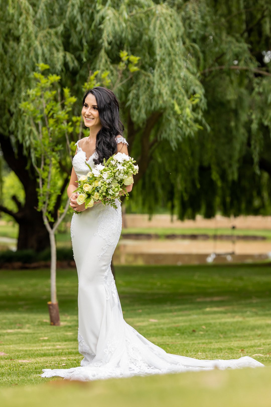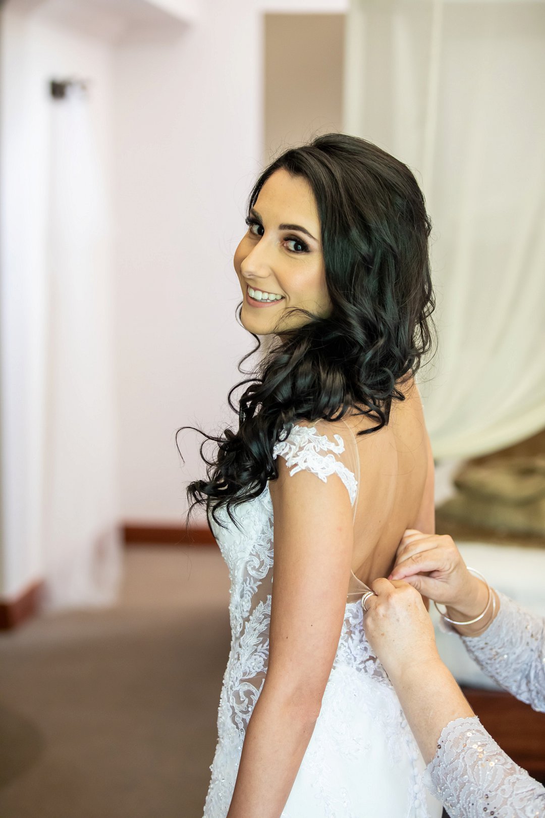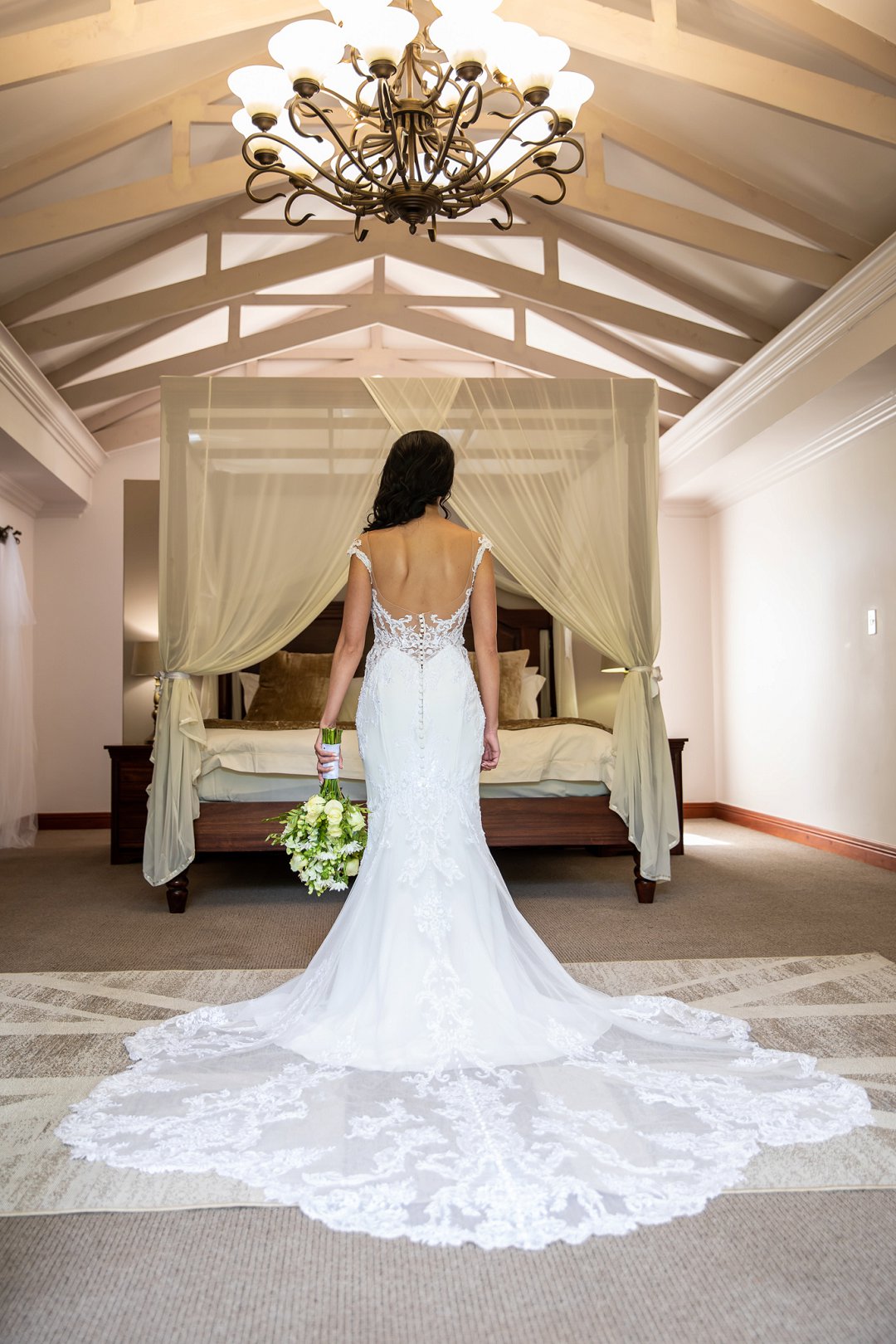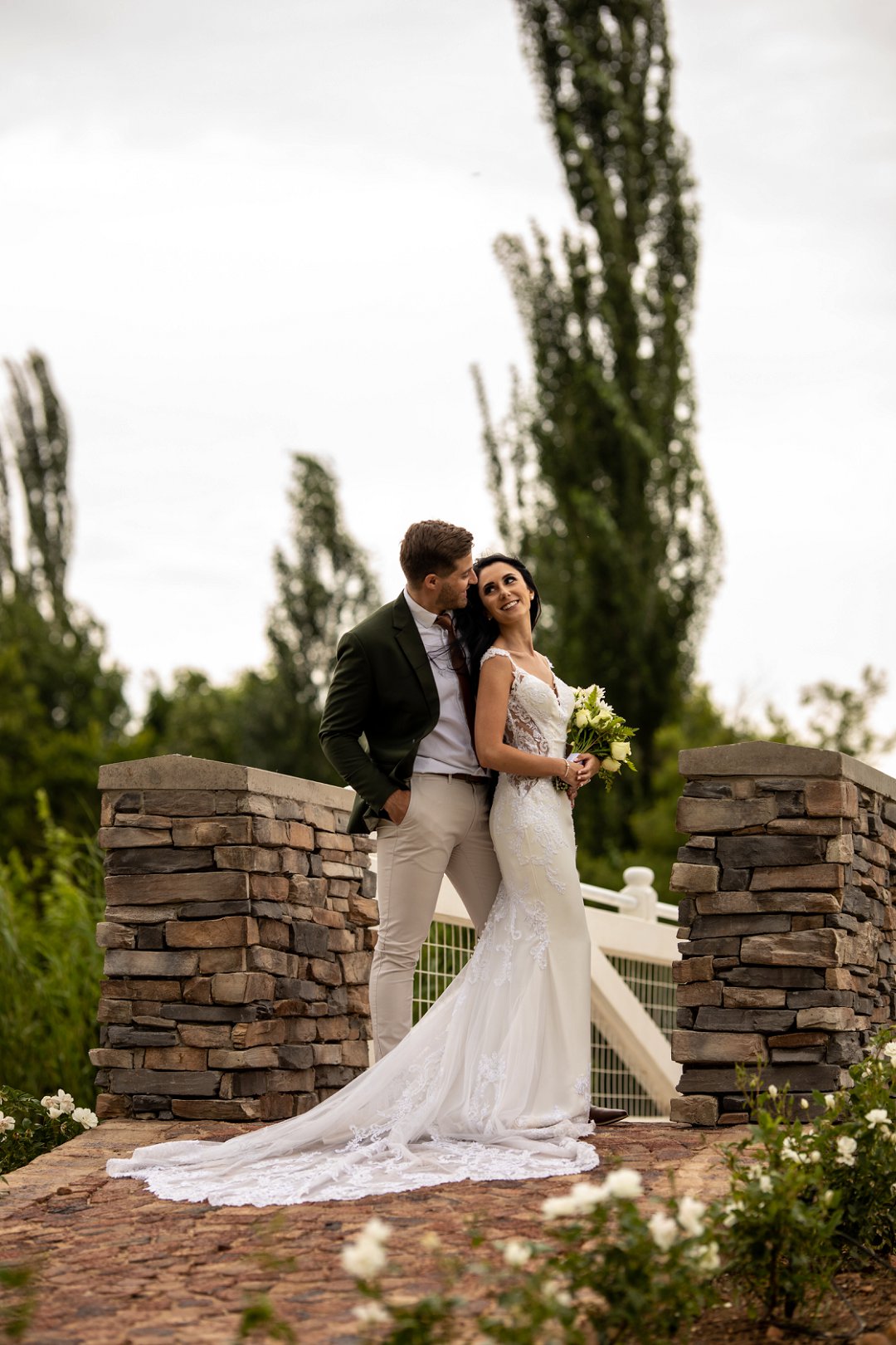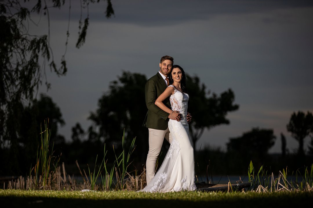 Dit was vir ons baie belangrik om ‘n stylvolle en elegante troue te hê, asook ‘n troue wat by ons persoonlikhede pas. My ‘Blue by Enzoani Marquise’ trourok en Naudé se olyfgroen en roomkleurige uitrusting het perfek by ons styl en persoonlikhede gepas. Dit was stylvol, maar tog gemaklik.