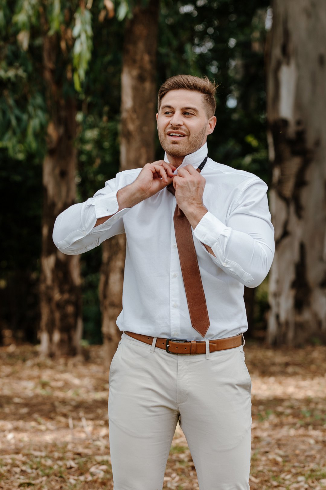 Een van die strooijonkers het sy kruisbande by die huis vergeet. Die pa van die bruid moes net voor die troue terugjaag huis toe om dit te gaan haal! Gelukkig was hy betyds.