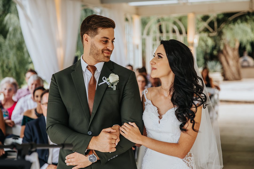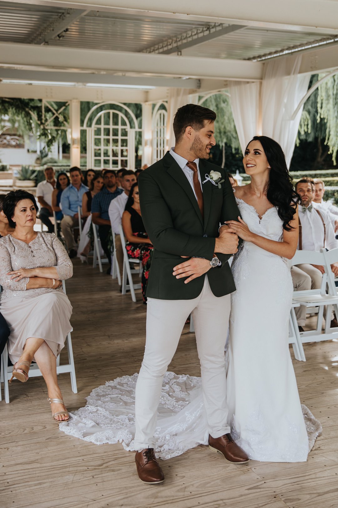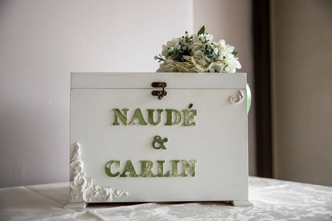 Toe Naudé en Carlin hul stylvolle troudag begin beplan het, het hul spesifieke vereistes gehad vir hul groot dag. Hulle wou by ‘n elegante tema hou, maar steeds sekermaak alles van die troudag komplimenteer hul persoonlikhede. Gemak was ook vir hulle ‘n groot faktor en daarom het Naudé en Carlin seker gemaak dat hulle, sowel as hul gaste tuis voel by hul spesiale troudag. Hulle het by ‘n neutrale kleur-palet gehou en olyf-groen ingebring vir ‘n unieke voorkoms. Hul kleur-palet het hul gekose venue se styl só mooi komplimenteer en perfek by die luukse groen grasperk en klassieke boustyl ingepas. Dié paartjie sê een van die merkwaardigste oomblikke van hul troudag was om aan tafel te sit en te sien hoe al hul gaste ‘n heerlike tyd het; Dís hoe mens weet jou troudag is ‘n sukses; En wat ‘n lekker gevoel is dit nie!