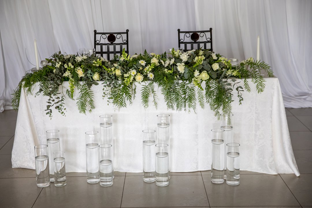 Oxbow Country Estate se gras groen tuine en klassieke boustyl het ons dadelik bekoor. Dit was so eenvoudig, maar so stylvol. Ons het daarom besluit om ons dekor ook net eenvoudig, wit en groen te maak.