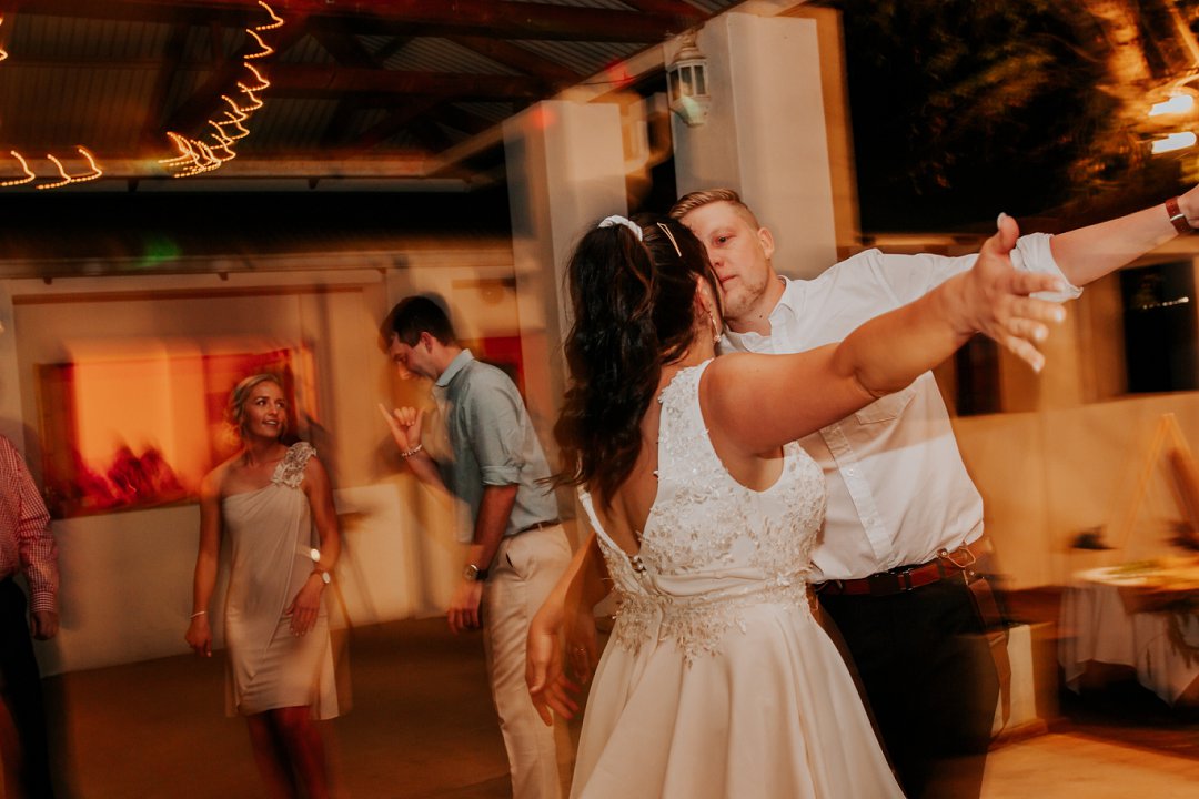 Ons het glad nie ons eerste dans geoefen of niks nie, ons het gesê ons gaan dit net “wing”. Nou dat ek daaraan dink moes ons dalk want Rynhardt wou net sokkie op ʼn stadige liedjie.