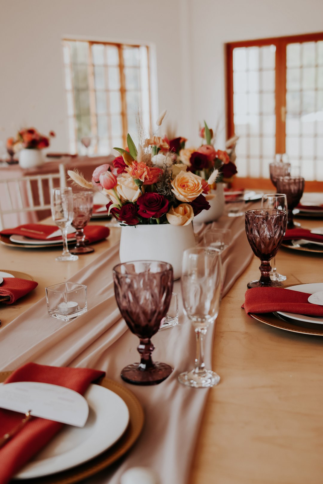 Ons tema agter die blomme en dekor was Bohémien Chic gewees. Dit is ʼn tema wat ek weet tydloos is en altyd mooi sal bly. Ons wou regtig net bietjie ietsie anders doen as die gewone. Ons troue moes ons uitbeeld en dit het.