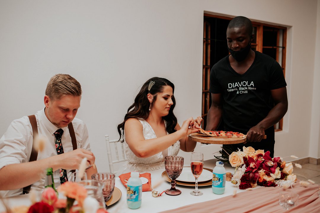 Ons het oorspronklik oor ons begroting gegaan maar toe eindig ons by hom op toe ons ʼn heeltemal nuwe troue binne ʼn maand beplan het. Ons het gegaan vanaf ʼn groot troue na ʼn klein Intieme troue a.g.v. KOVID 19, maar ons is nie vir een oomblik spuit nie.