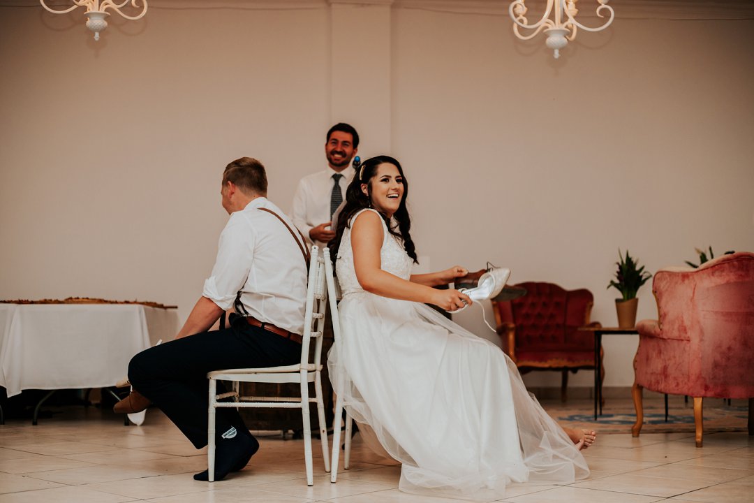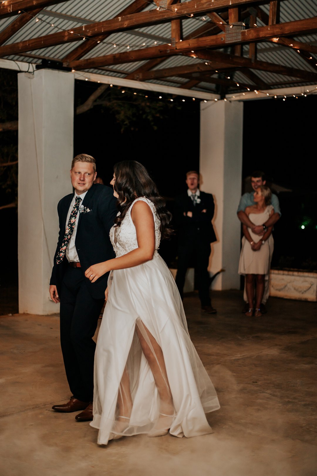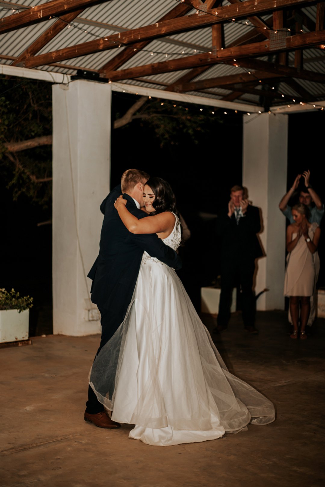 Ons het glad nie ons eerste dans geoefen of niks nie, ons het gesê ons gaan dit net “wing”. Nou dat ek daaraan dink moes ons dalk want Rynhardt wou net sokkie op ʼn stadige liedjie.