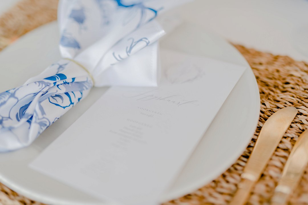 Mooi Troues deel die Blou en Wit elegante trou skryfbehoeftes vir die paartjie wat opsoek is na iets klassiek en stylvol.  Bacht Design, een van Mooi Troues se talentvolle skryfbehoefte bydraers het hierdie pragtige blou en wit skryfbehoeftes ontwerp.  Hierdie stel skryfbehoeftes is perfek vir die paartjie wat opsoek is na ʼn ontwerp met fyn elemente en dit sal ook perfek werk vir ʼn middagtee troue, of ʼn baie stylvolle strandtroue. Daar is iets baie spesiaal aan die skryfbehoeftes.