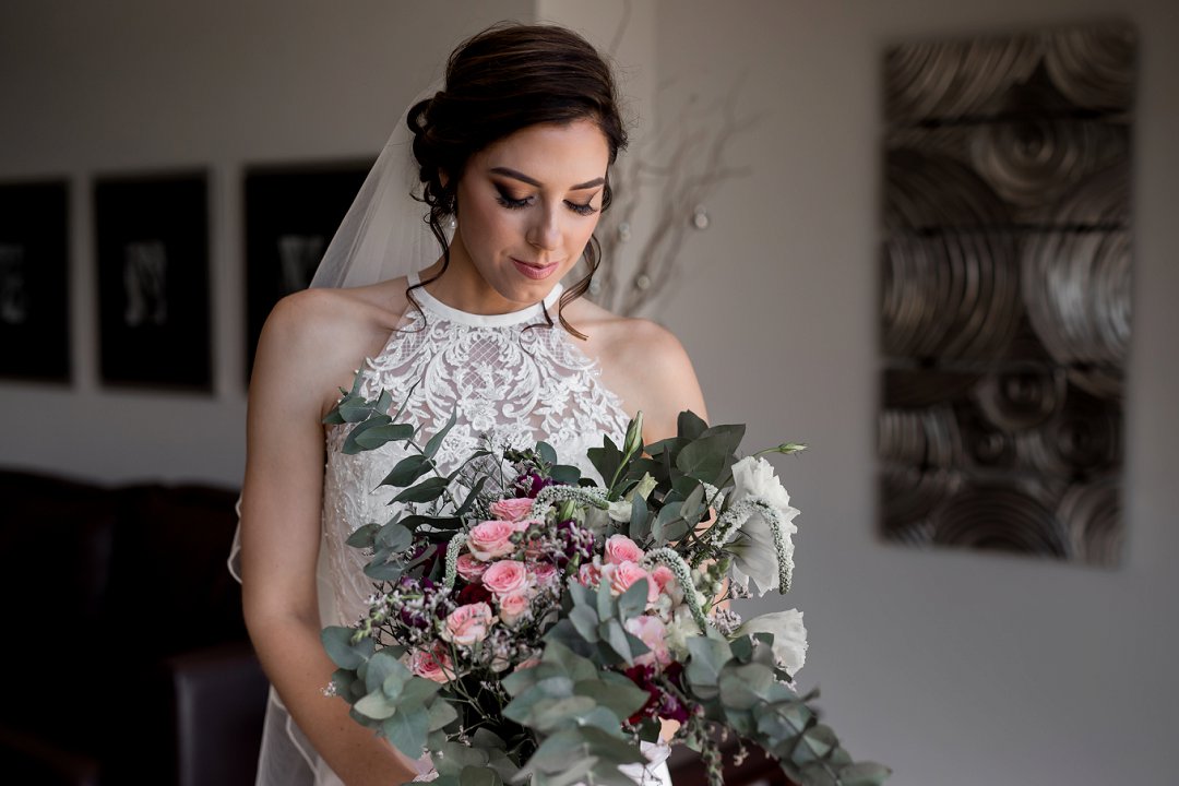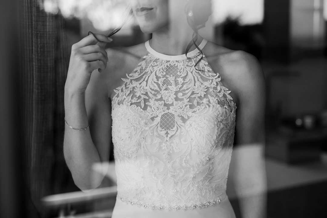Elmien se trourok was eenvoudig met ʼn halter nek bo-stuk. Die kant bo-stuk het sy laat borduur met ekstra pêreltjies en steentjies. Om haar hele voorkoms af te rond het Elmien ook ʼn ‘bruidsgordel’ gedra. Haar trourok is van Bridal Manor geleë in Pretoria. Die toekomstige bruid wat opsoek is na haar droom trourok kan gerus ʼn besoek af lê aan Bridal Manor. Hul professionele konsultante sal jou help om die perfekte trourok te vind. Maak sommer vandag nog jou afspraak.