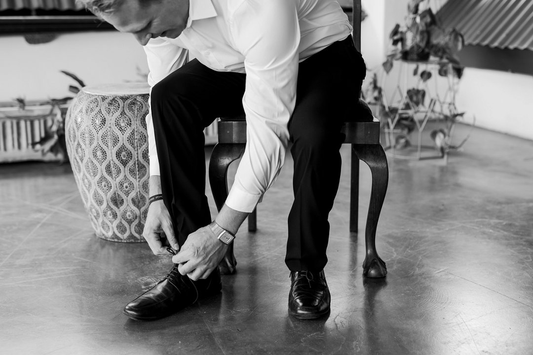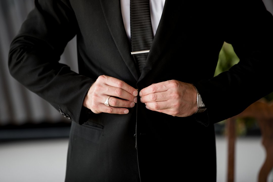 Dewald se troupak was swart en hy het ʼn swart das gedra – hy het ook bykomstighede soos manchetknope en ʼn dasspeld gedra, en die kleur het ons ingebring met sy Bordeaux skouerruiker.