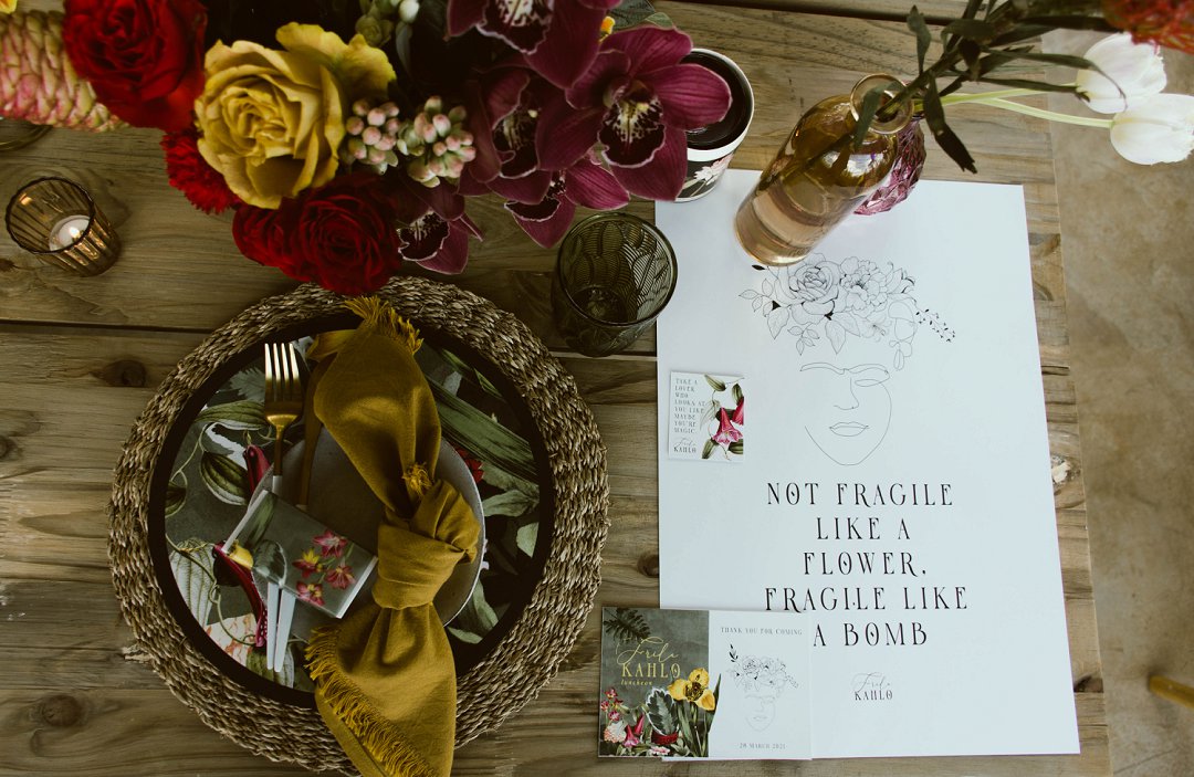 Hier by Mooi Troues deel ons Frida Kahlo geïnspireerde trou inspirasie wat jou asem sal wegslaan. Vir die van julle wat nie bekend is met die kunstenaar nie, hier is ʼn kort verduideliking. Frida Kahlo was ʼn Mexikaanse skilder, bekend vir haar vele portrette, selfportrette en werke wat geïnspireer is deur die natuur en artefakte van Mexiko.