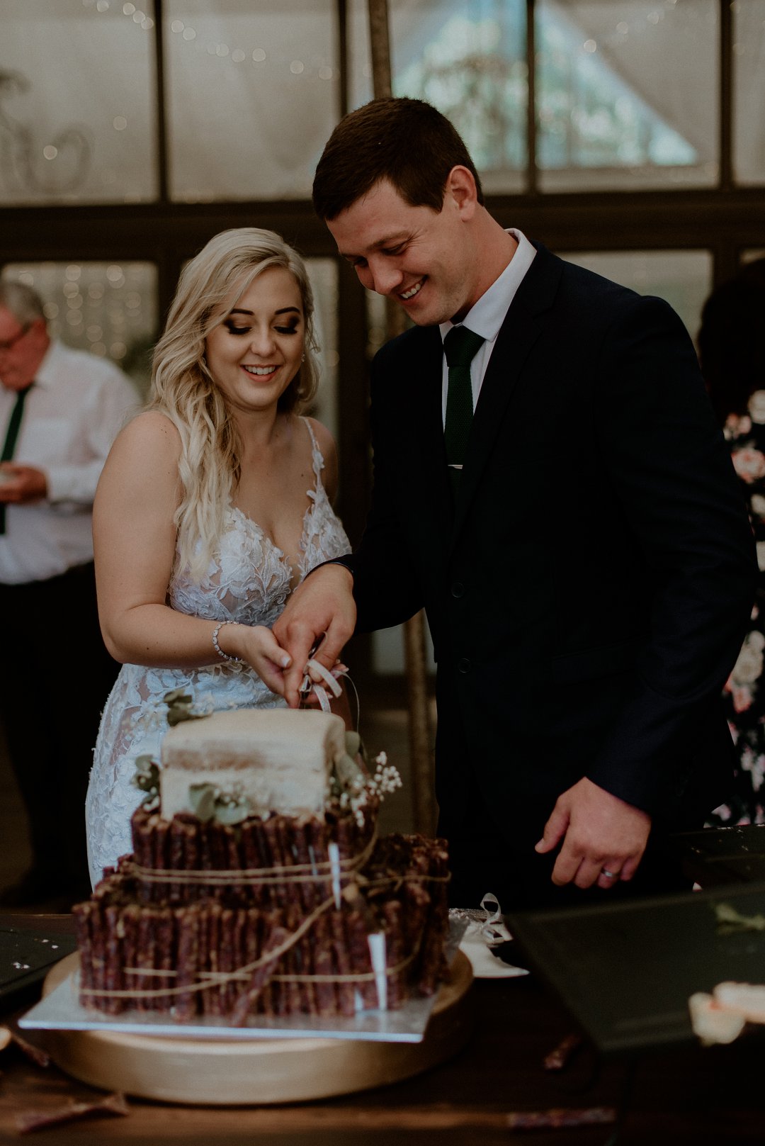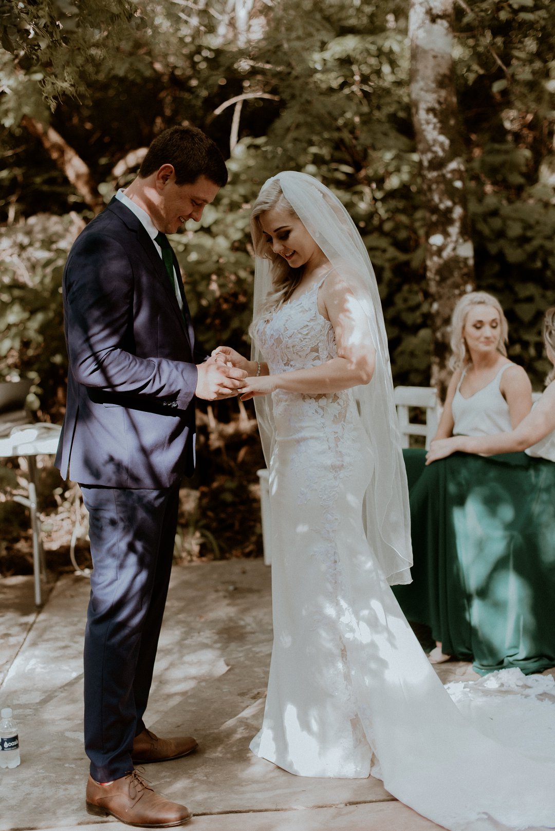 By dit gesê was die strooimeisies se donkergroen rompe en die strooijonkers se donkergroen dasse so komplimenterend by die hele dag. Al die verskillende elemente was ʼn perfekte wanbeeld van die woudagtige selfdoen troue.