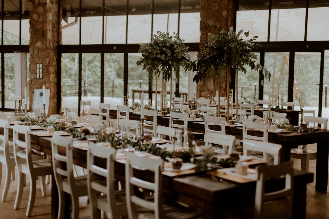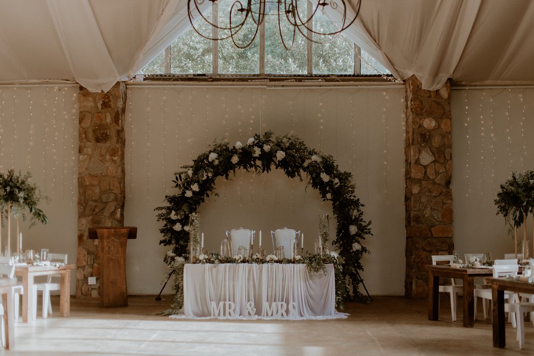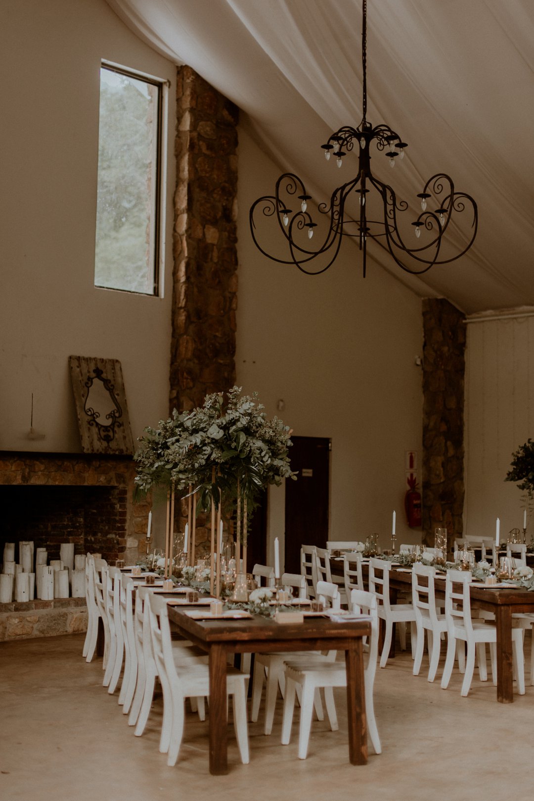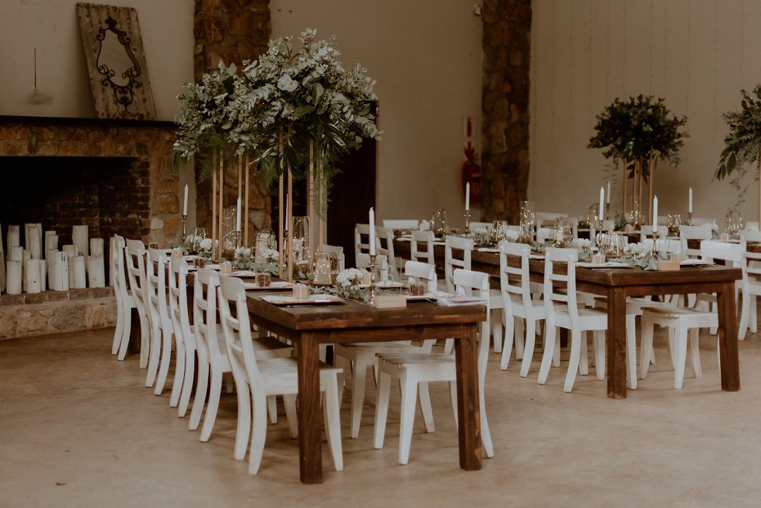 Christo en Rochelle wou iets eenvoudig, maar steeds stylvol en formeel hê vir hul woudagtige troue. Die pragtige dekor en blomme is gedoen deur Anrule Plant and Decor hire. Hulle het dit beslis baie mooi reggekry en die hele venue se trou dekor het so perfek ingepas by die hele atmosfeer van die trou venue. Die hout tafels met die wit stoele en groen dekor elemente was so perfekte illustrasie van wat Christo en Rochelle op hul troudag wou hê. Indien jy tans besig is met troubeplanning en gebruik wil maak van Anrulè Plant and Decor Hire, kliek gerus Anrule Plant and Decor hire.