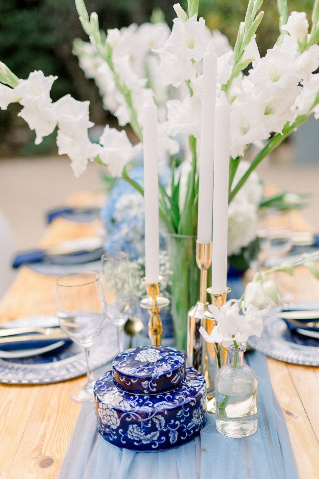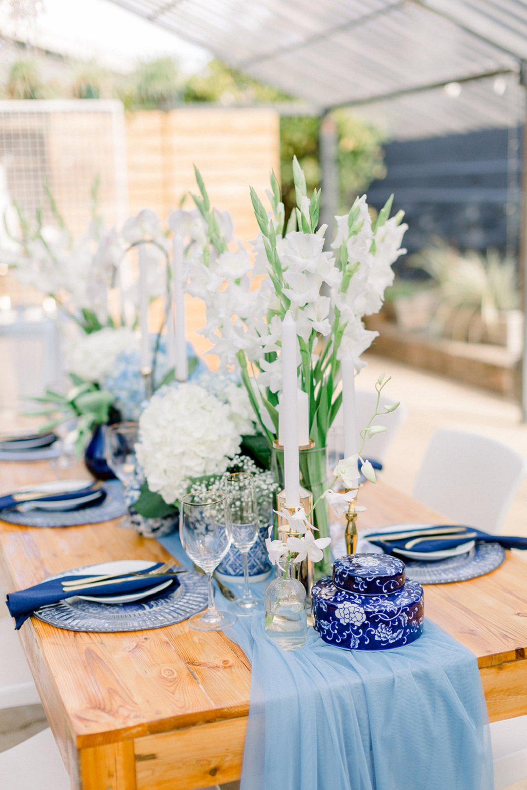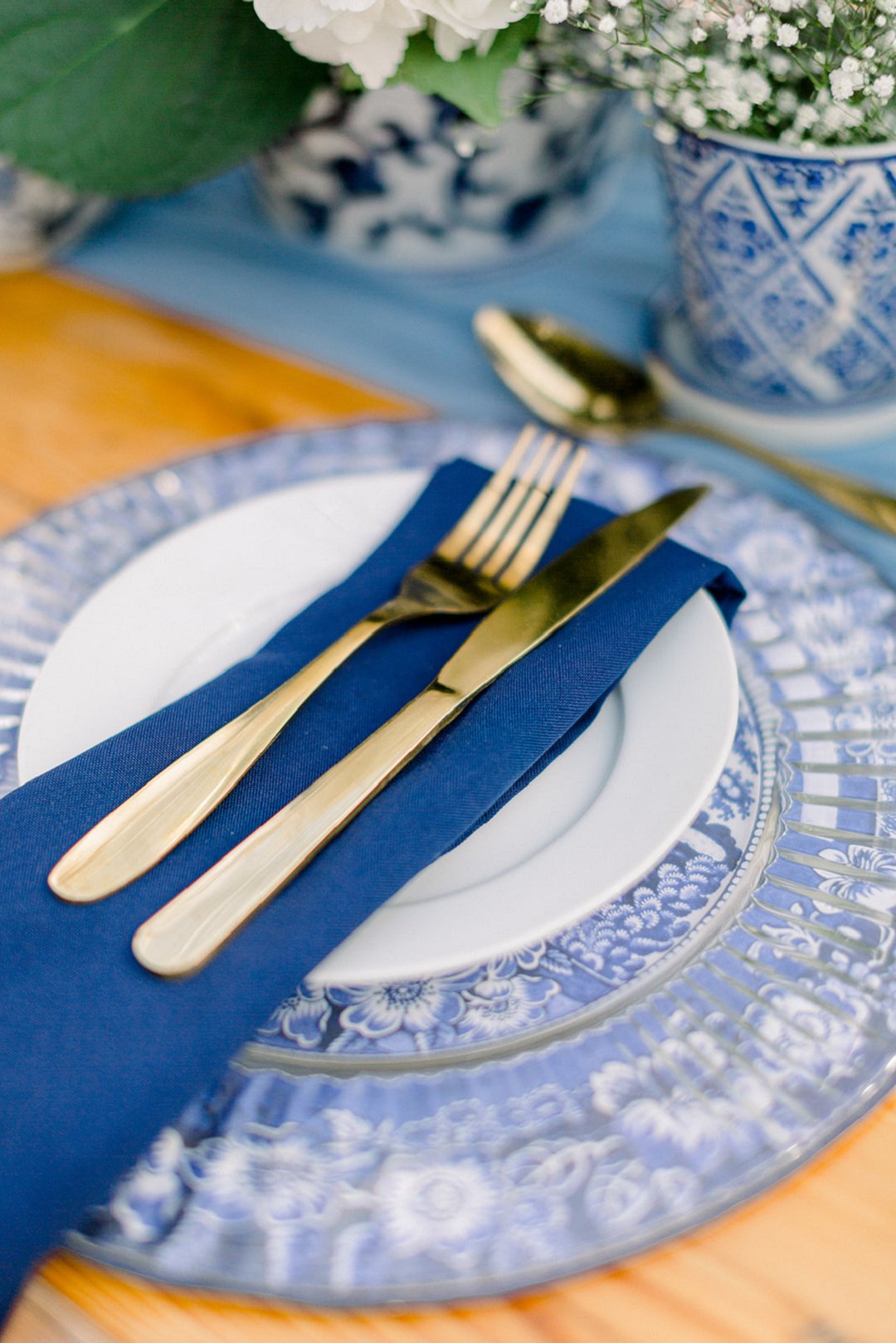 Die verskillende kleure van blou is so mooi geïmplementeer en komplimenteer so besonders. Delft-blou met die goue eetgerei pas perfek en gee nogsteeds ʼn ongelooflik klassieke en sagte gevoel.