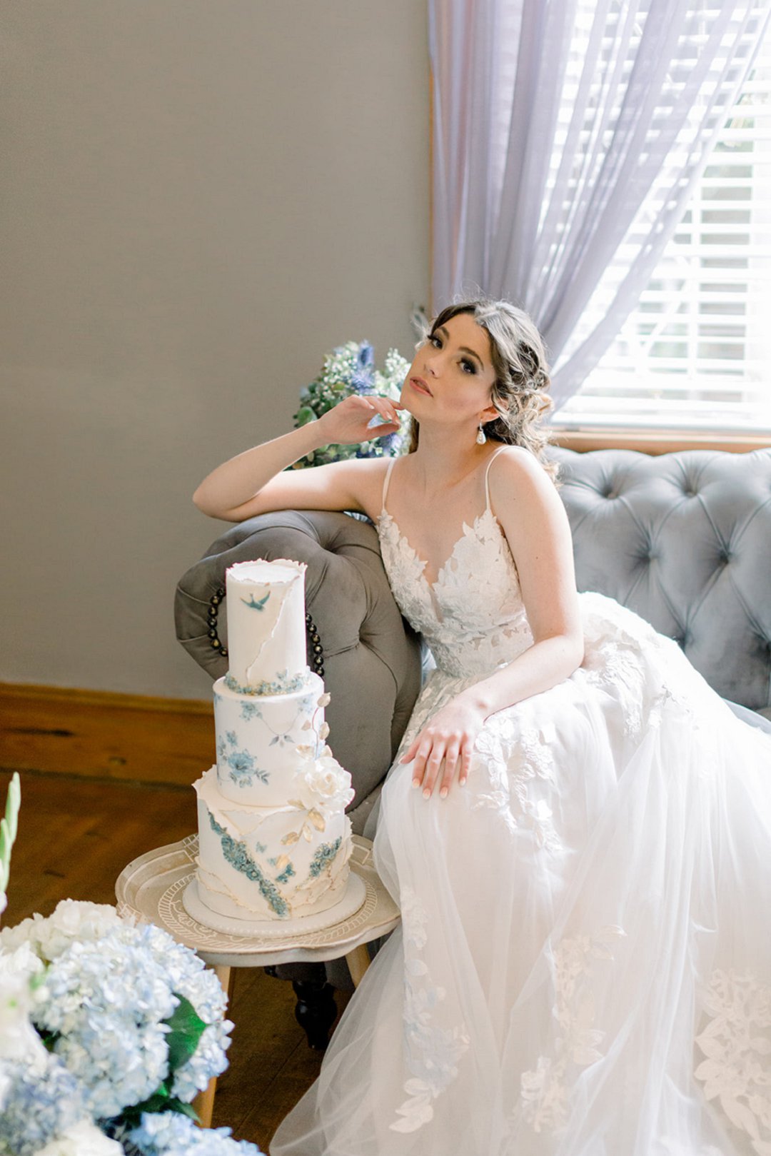 Ek droom van blou kom van my verlange na die see. Blou is ʼn kleur van kalmte en vrede en almal het bietjie van dit nodig. Die sagte blou skakerings pas so mooi by ʼn romantiese, klassieke troue en so is die gestileerde fotosessie gebore. Ons het die elemente van sagte blou geverfde blomme en Delft ingebring vir die visuele impak. Ek wou ook die sny van die koek seremonie deel maak van die fotosessie omdat dit ʼn belangrike deel is van ʼn troue. Die sny van die koek seremonie is een van die oudste tradisies en is ʼn belofte dat die bruid en bruidegom vir mekaar sal voorsien.