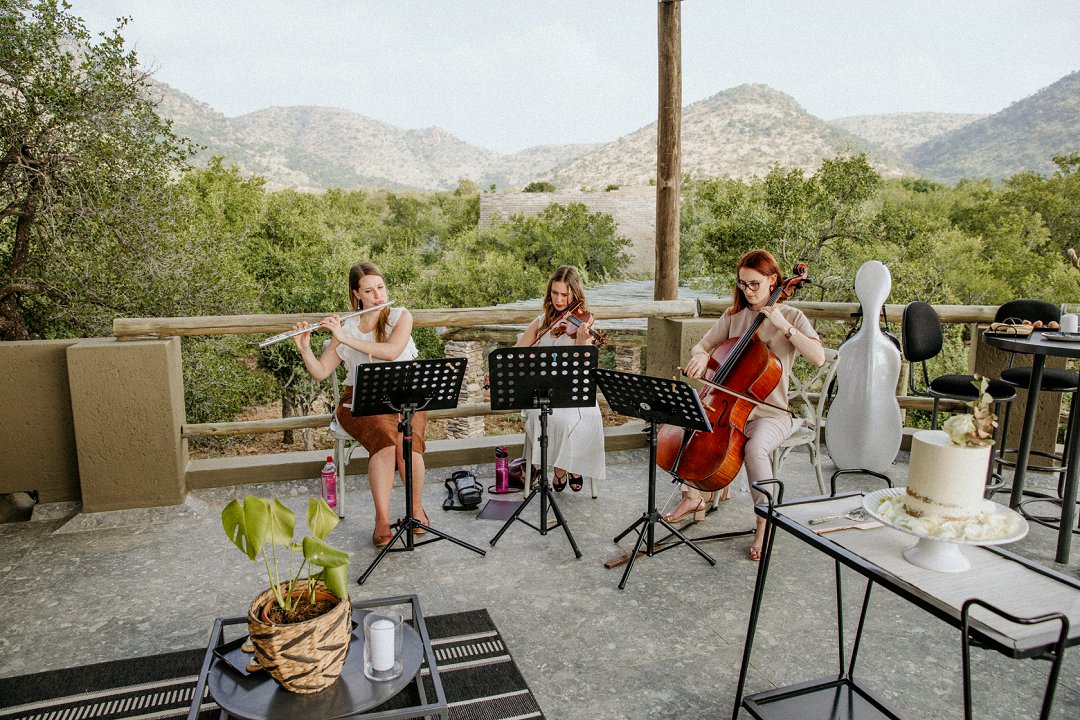 Alhoewel dit ʼn intieme troudag was, het die paartjie steeds gesorg vir top gehalte vermaak. Gracenote Music, ʼn stryk-trio, het musiek voor die seremonie en tydens die kanapees gespeel.