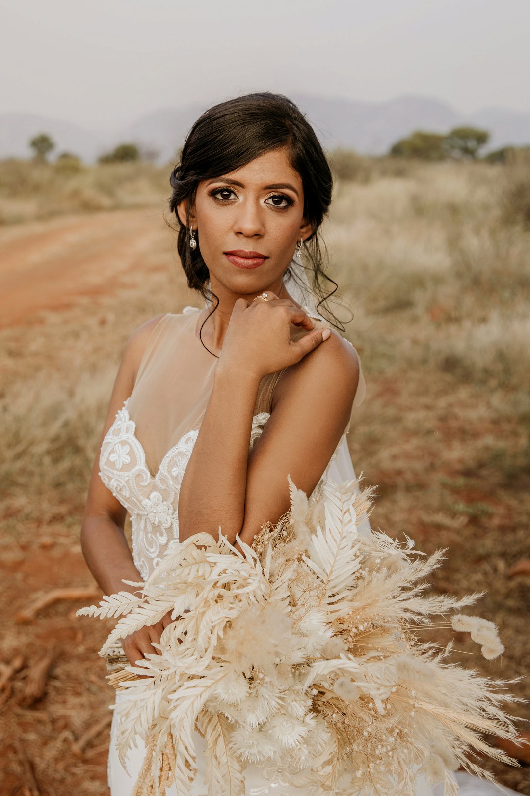 Alhoewel dit ʼn klein troue was, wou ek as die bruid steeds glansryk lyk en voel. Ek wou nie ʼn rok hê wat sou wegneem van die natuurlike skoonheid van die lodge of die omgewing nie, maar ek wou nogsteeds uitstaan en Vonvé het die perfekte rok vir my gehad.