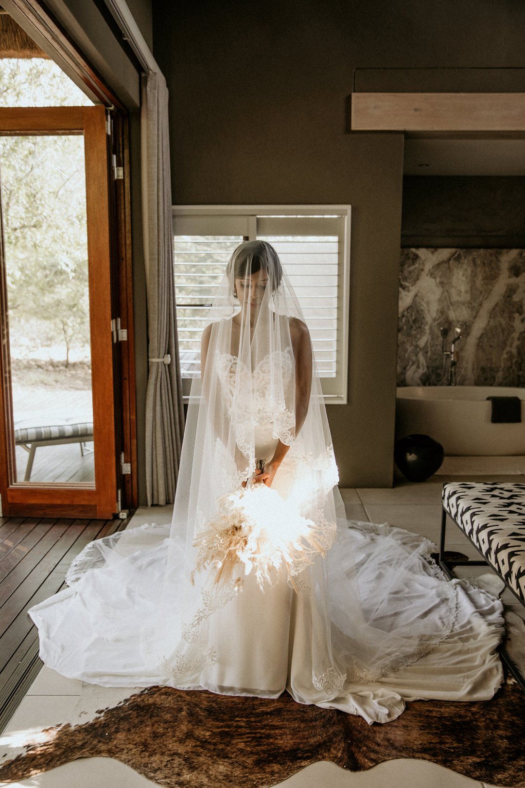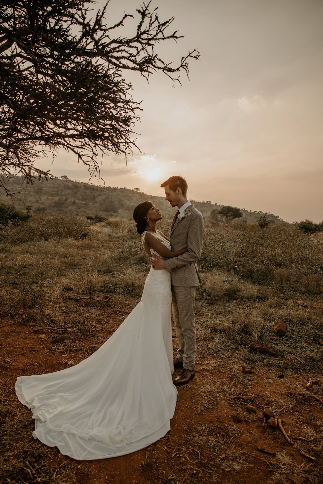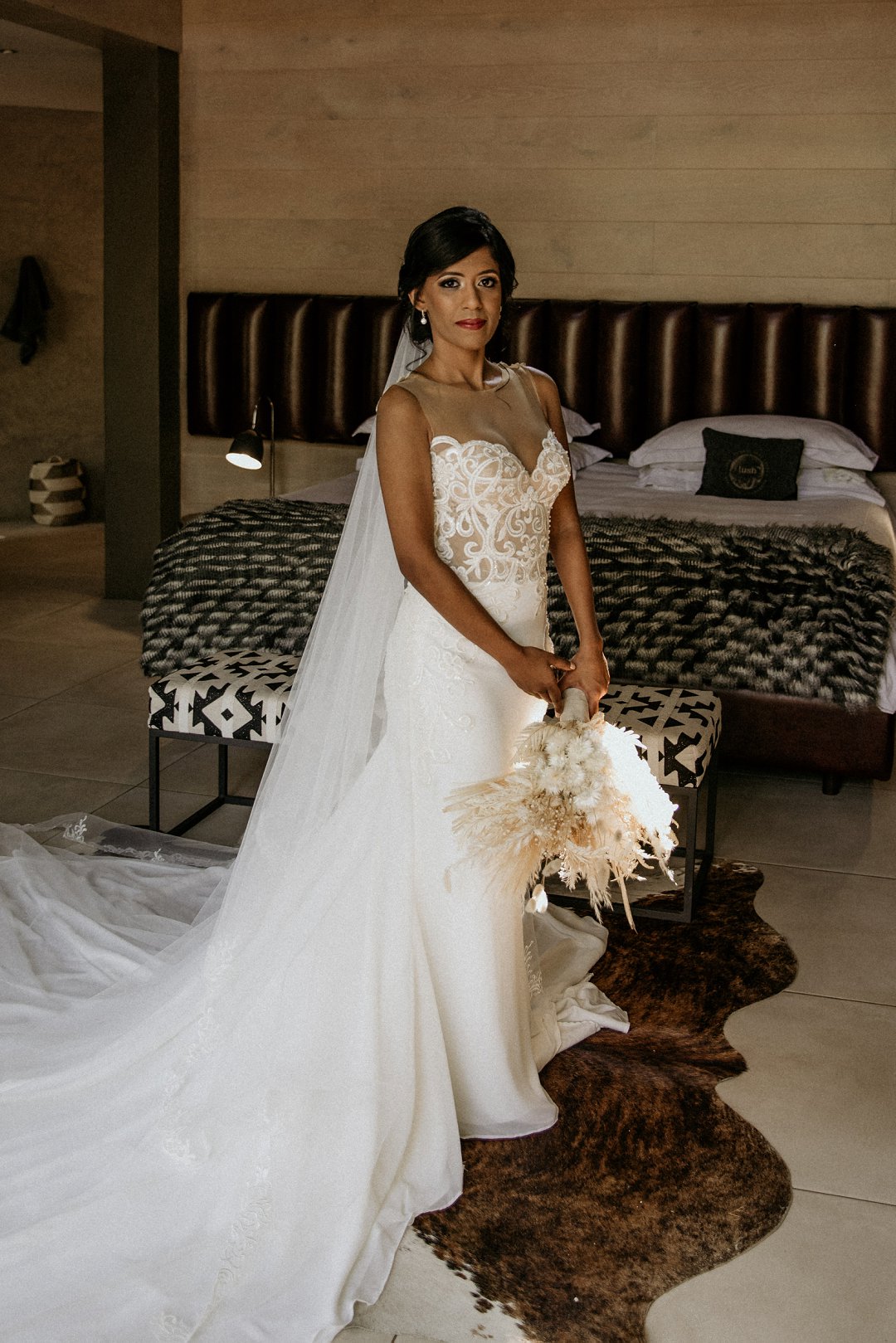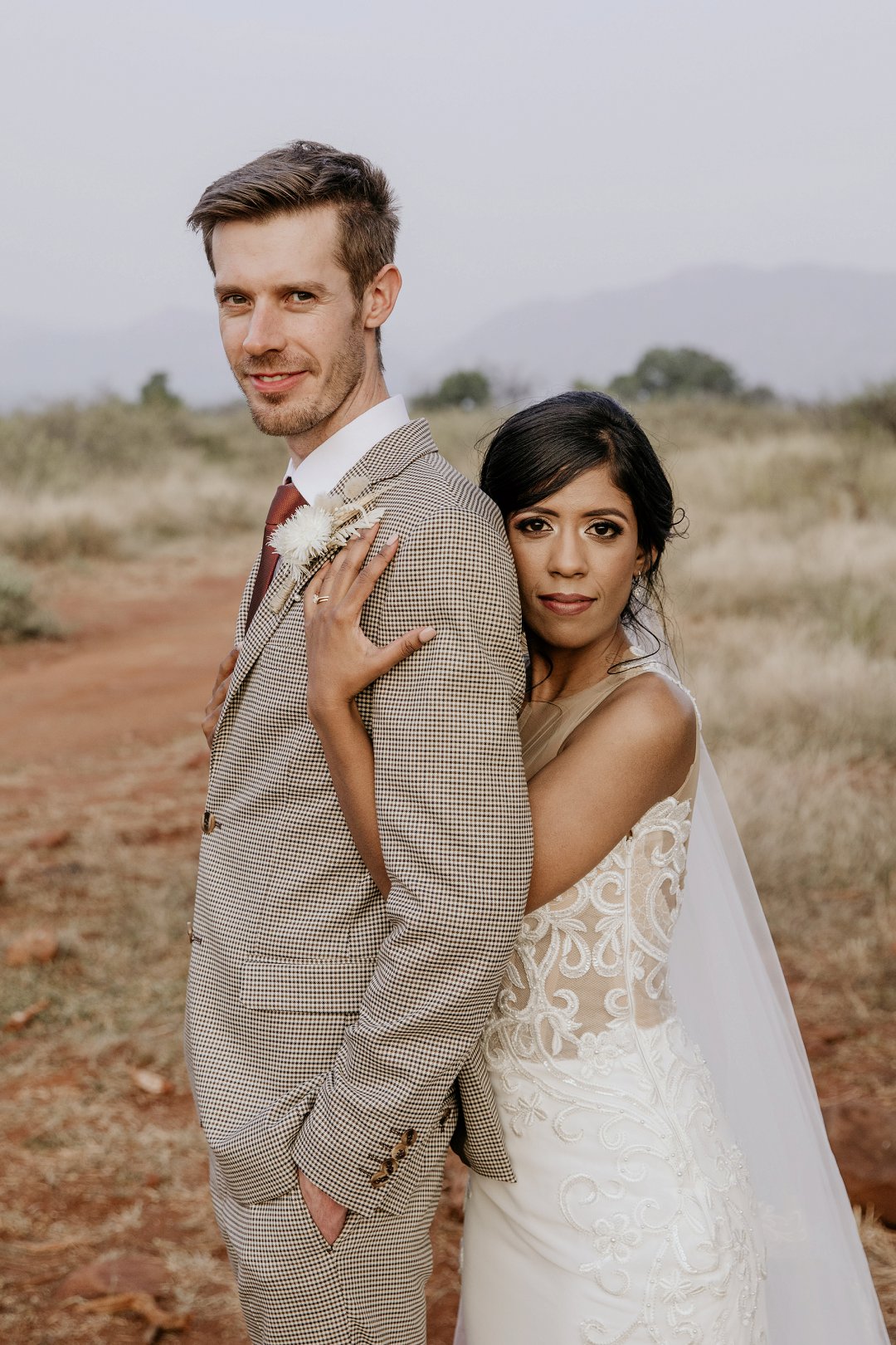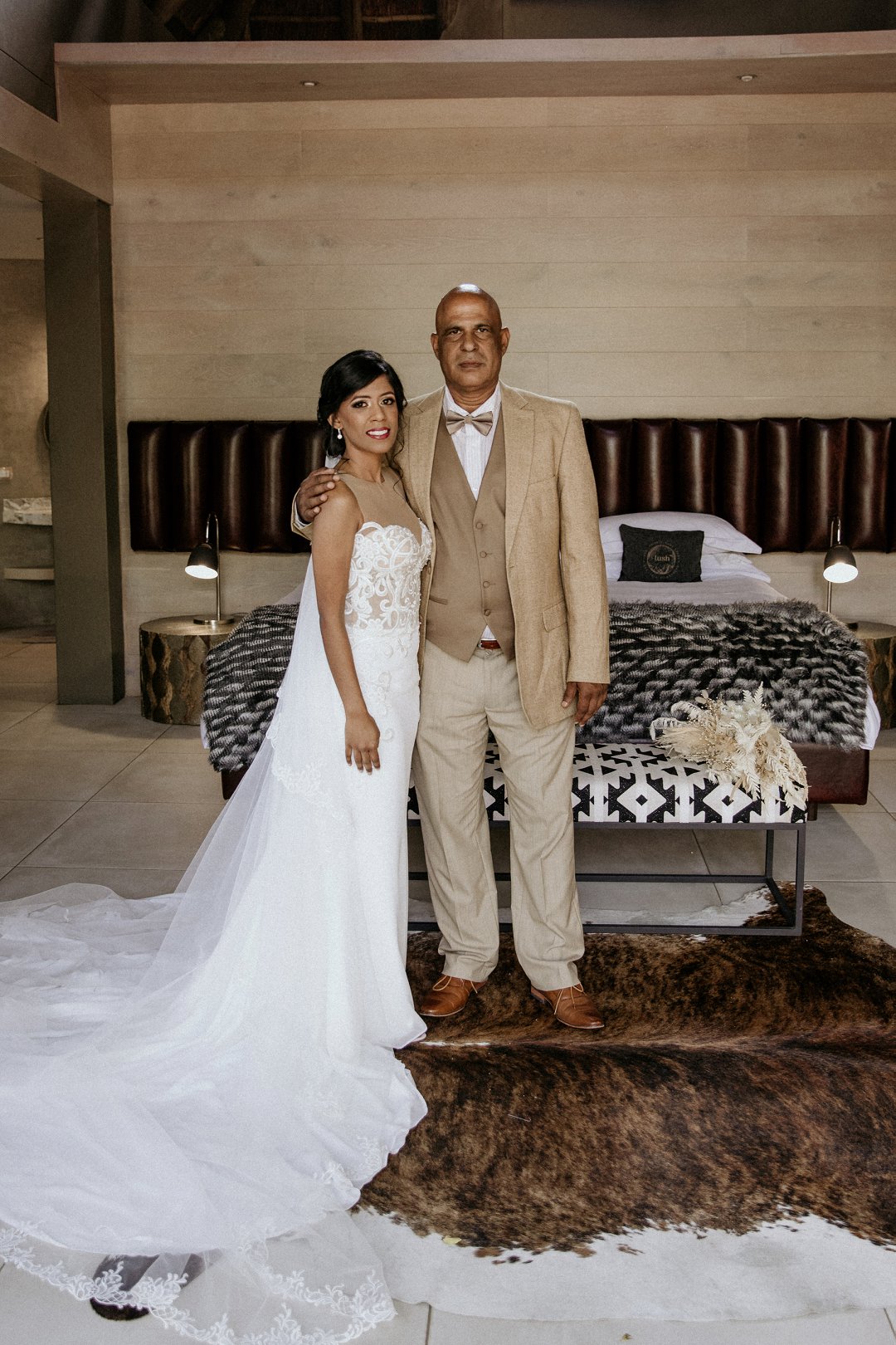 Alhoewel dit ʼn klein troue was, wou ek as die bruid steeds glansryk lyk en voel. Ek wou nie ʼn rok hê wat sou wegneem van die natuurlike skoonheid van die lodge of die omgewing nie, maar ek wou nogsteeds uitstaan en Vonvé het die perfekte rok vir my gehad.