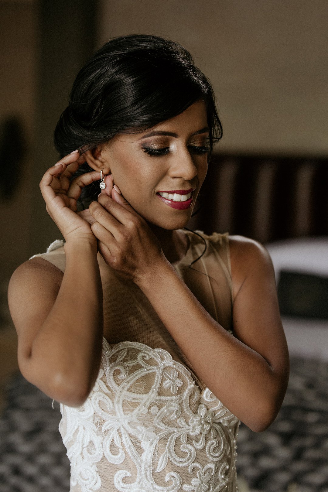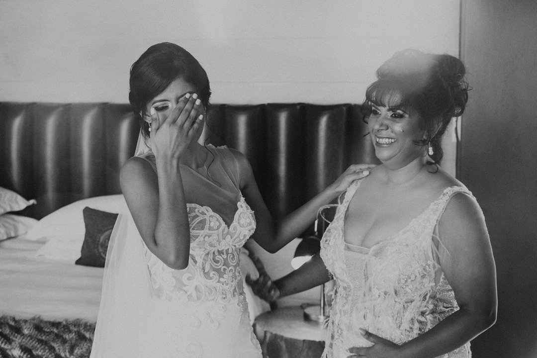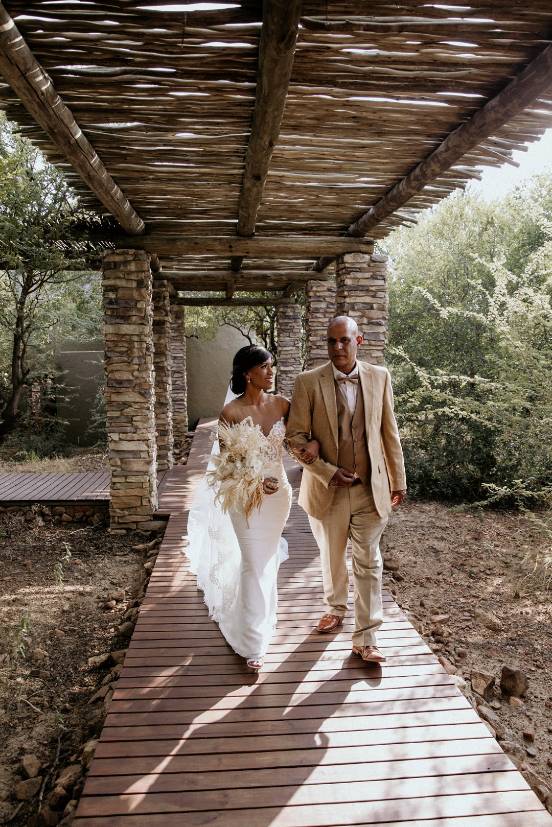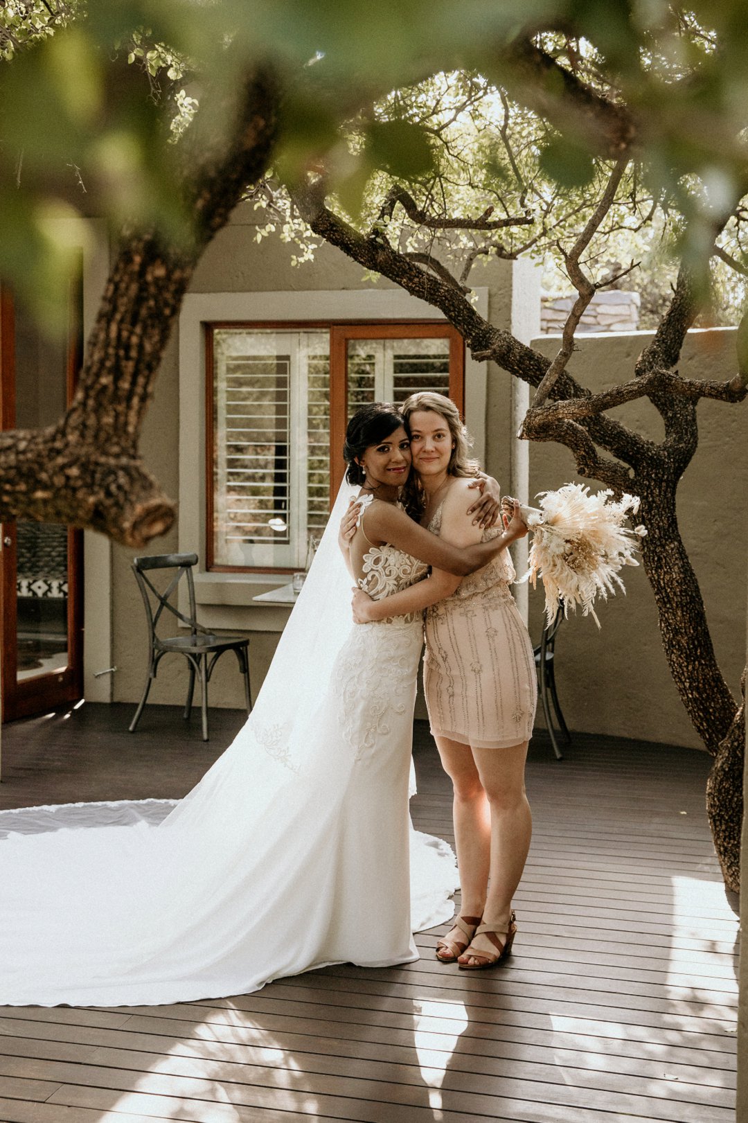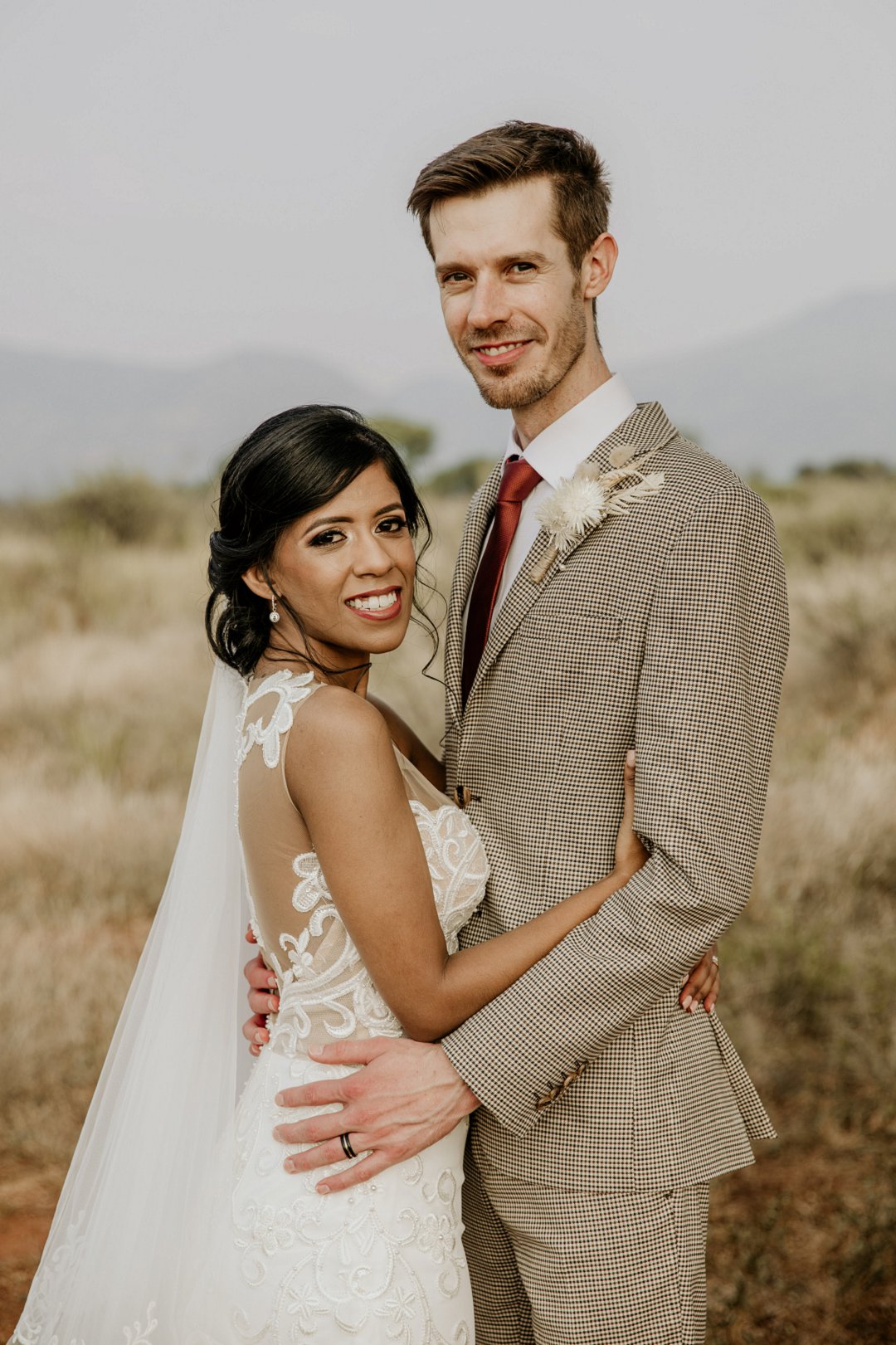 Alhoewel dit ʼn klein troue was, wou ek as die bruid steeds glansryk lyk en voel. Ek wou nie ʼn rok hê wat sou wegneem van die natuurlike skoonheid van die lodge of die omgewing nie, maar ek wou nogsteeds uitstaan en Vonvé het die perfekte rok vir my gehad.