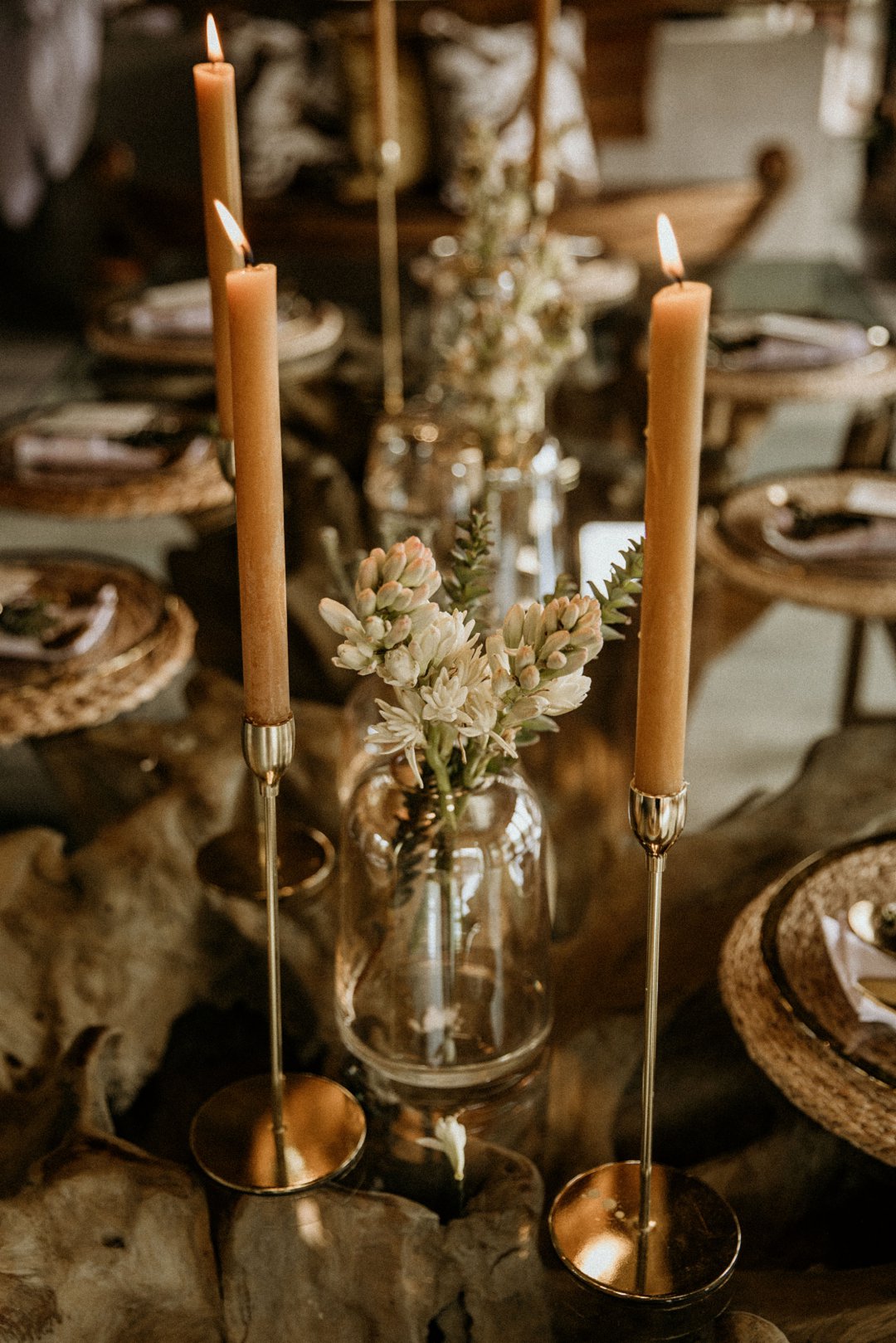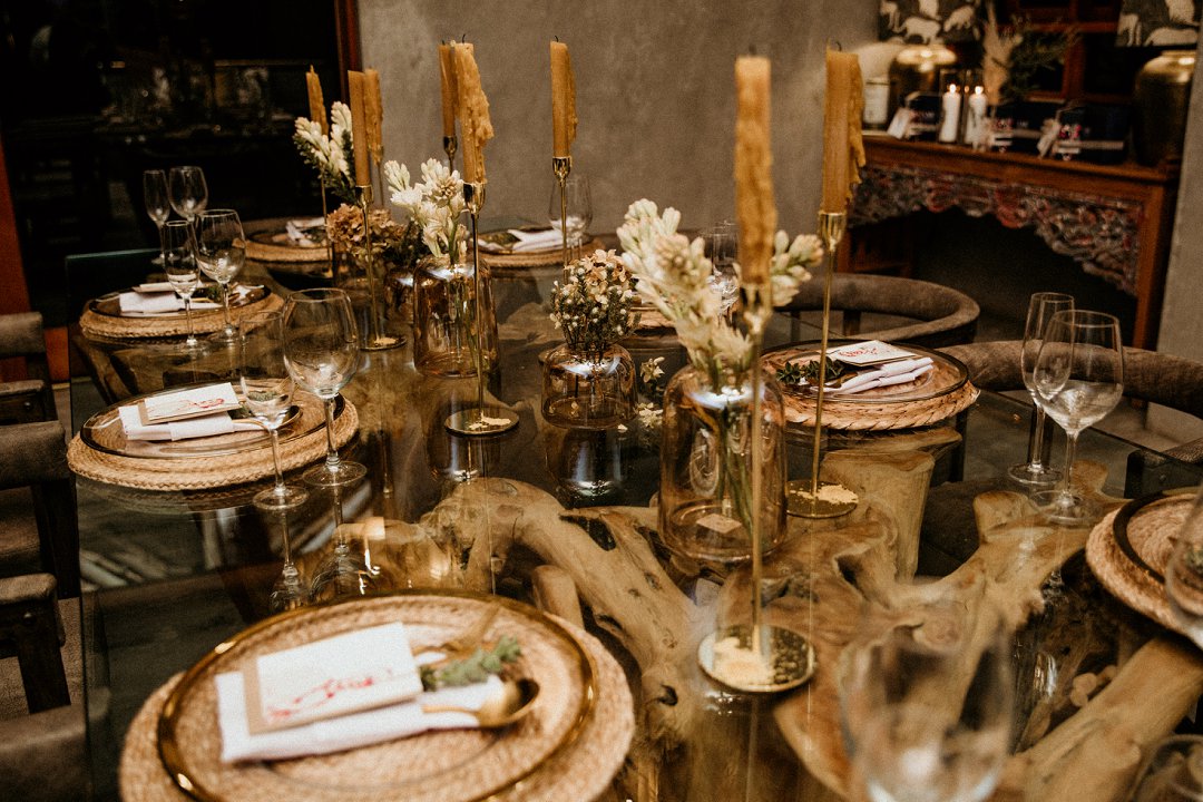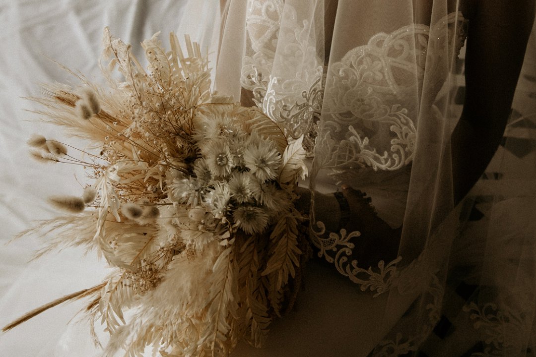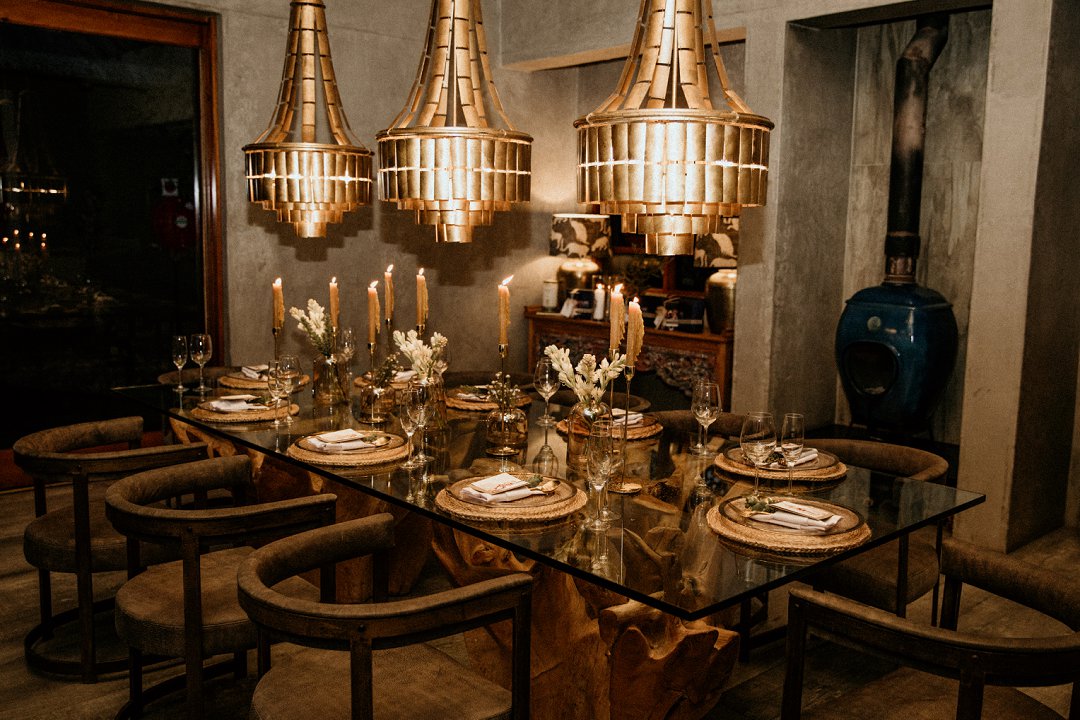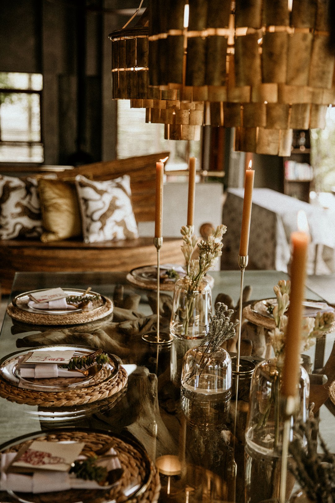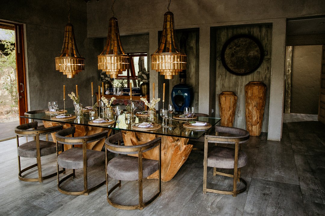 Ons het van die boho-tema gehou, maar wou getrou bly aan die voorkoms van die lodge en ons troue in die African Bush. Ek sou dus sê dat ons dekor ʼn samevoeging van die twee style was.