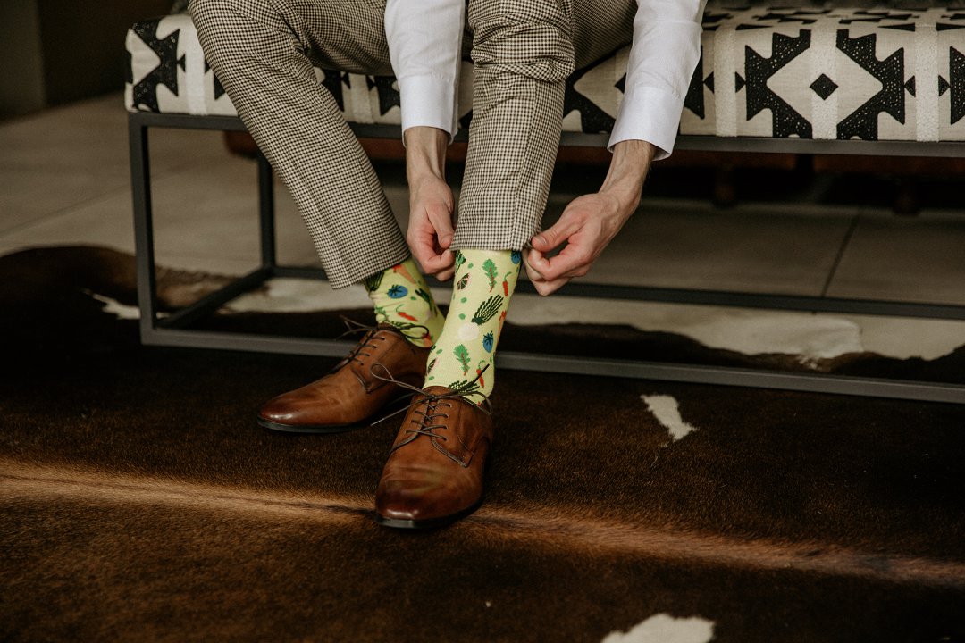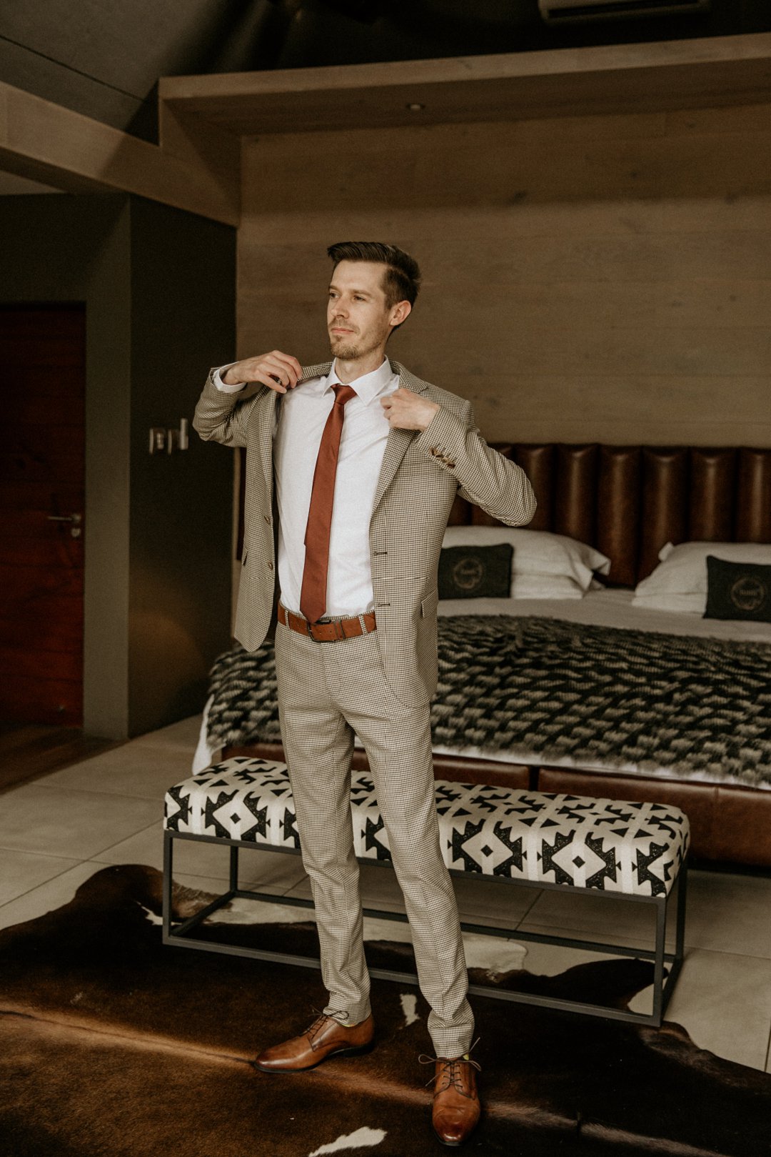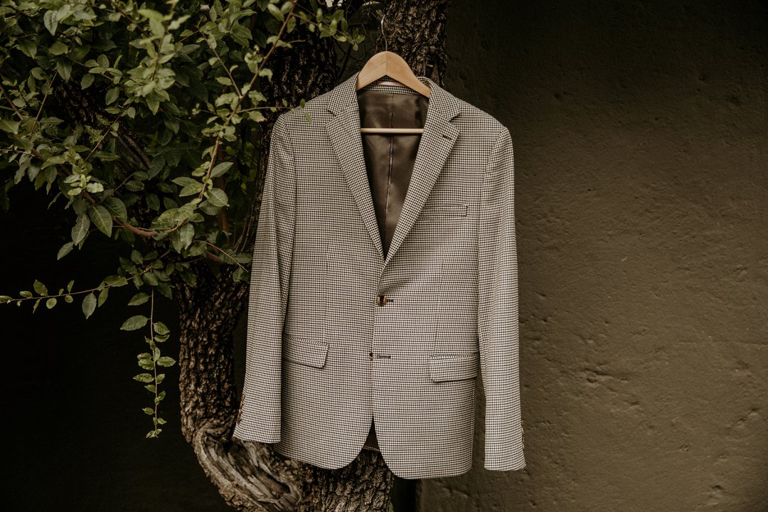 Emile het sy pak by Angelino gekoop en moes net by ʼn neutrale kleur hou. Ek het gehelp met sy keuse, maar dit was nogsteeds sy besluit.