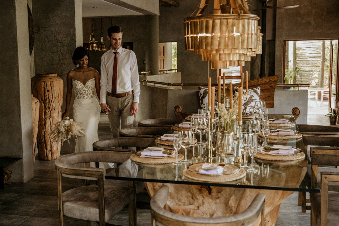 ʼn Intieme Afrika bostroue met ʼn simplisties boheemse tema en aardse kleurskema was die perfekte manier om Emile en Carmen se troudag te vier. Die paartjie wou ʼn intieme troue hê tydens ʼn luukse vakansie wegbreek saam met hulle geliefdes en familie.