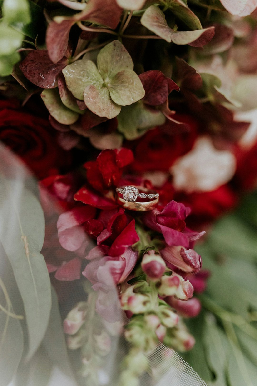 Skakerings van wynrooi kom na vore in die klere van die strooimeisies en die troudekor. Hierdie element het toegelaat dat die troudekor werklik die venue spasie ophelder en romanties vertoon. Die troudekor is simplisties gehou met wynrooi tafellopers, bloekom blare, blomme in skakerings van rooi en bypassende servette.