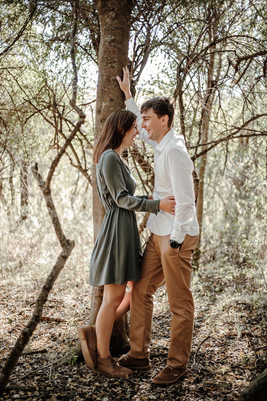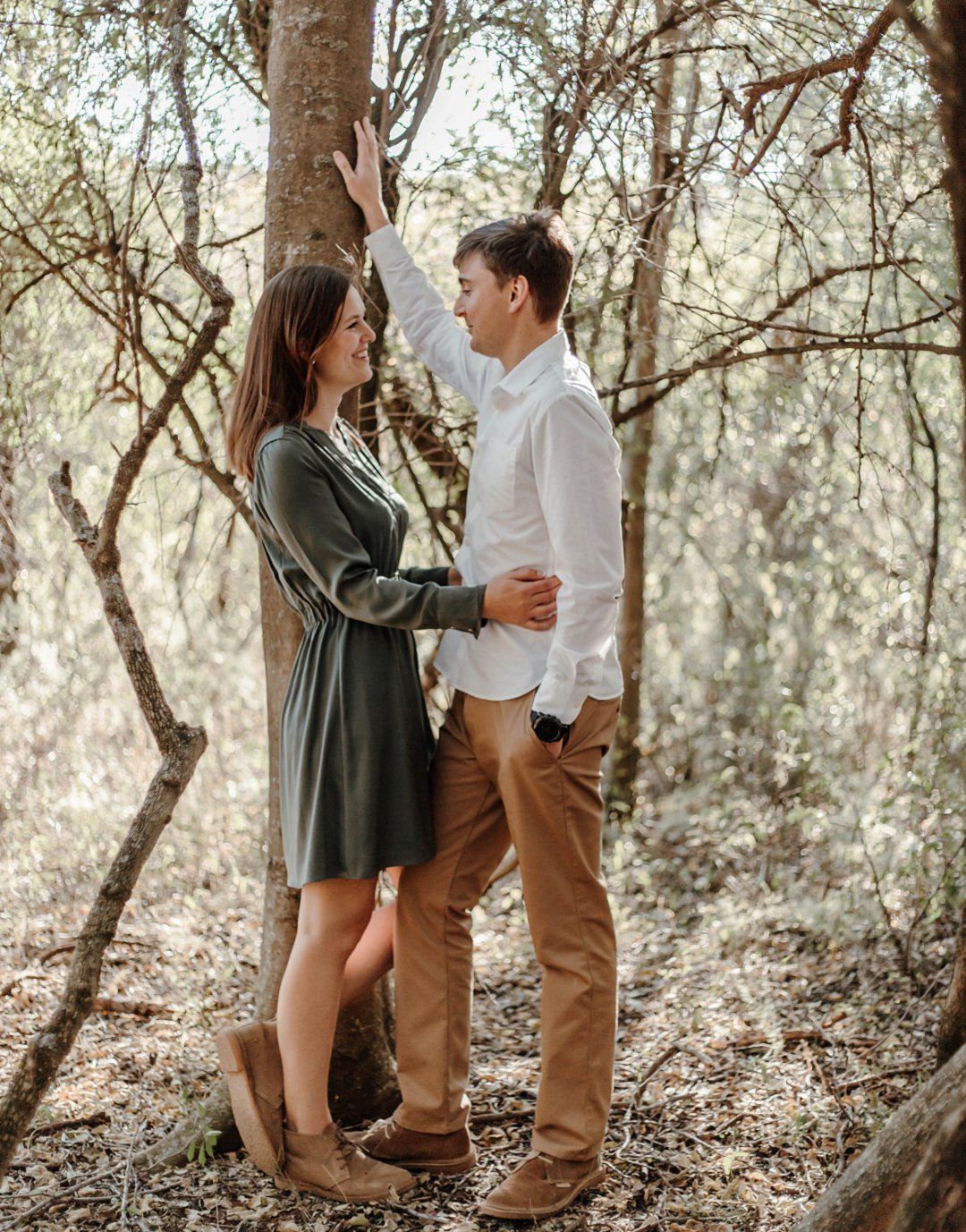 Omdat albei Demain en Cailin baie lief is vir die bosveld, was dit die inspirasie vir hul verlowings fotosessie. Hulle wou graag hul liefde vir die bos en die natuurskoon, as ook vir mekaar, weerspieël met die doel om foto’s te kan hê vir hul huis en hul trou uitnodigings. Die paartjie het ook gedink dat dit ʼn goeie idee sal wees om ʼn verlowings fotosessie te hê sodat hul saam met hul gekose fotograaf kan werk voor hul groot dag. Ons dink dit is ʼn briljante idee. Mooi Troues se lesers sal definitief baat deur om hierdie in gedagte te hou indien jul nie weet of jul ʼn verlowings fotosessie voor jul troudag sal wil hê nie. So kan die bruidspaartjie ʼn voorsmaak kry van hoe die foto’s van jul groot dag heel moontlik sal uitdraai.