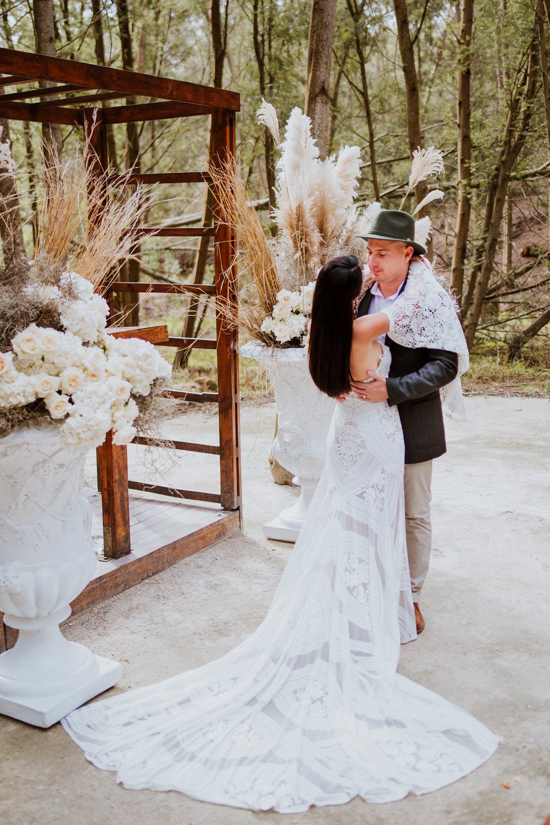 Rico en Elani kon na ses maande se langer geduld weens die KOVID-19 pandemie, uiteindelik aan mekaar trou beloof by hul klassieke boheemse woud troue.