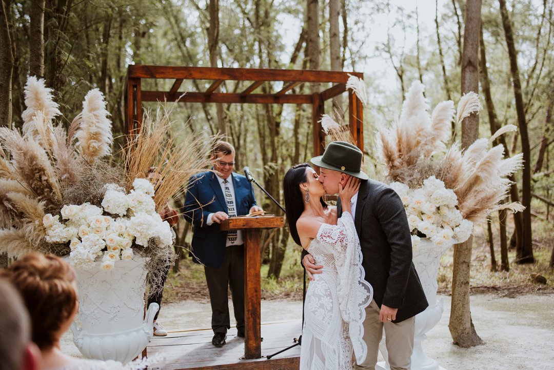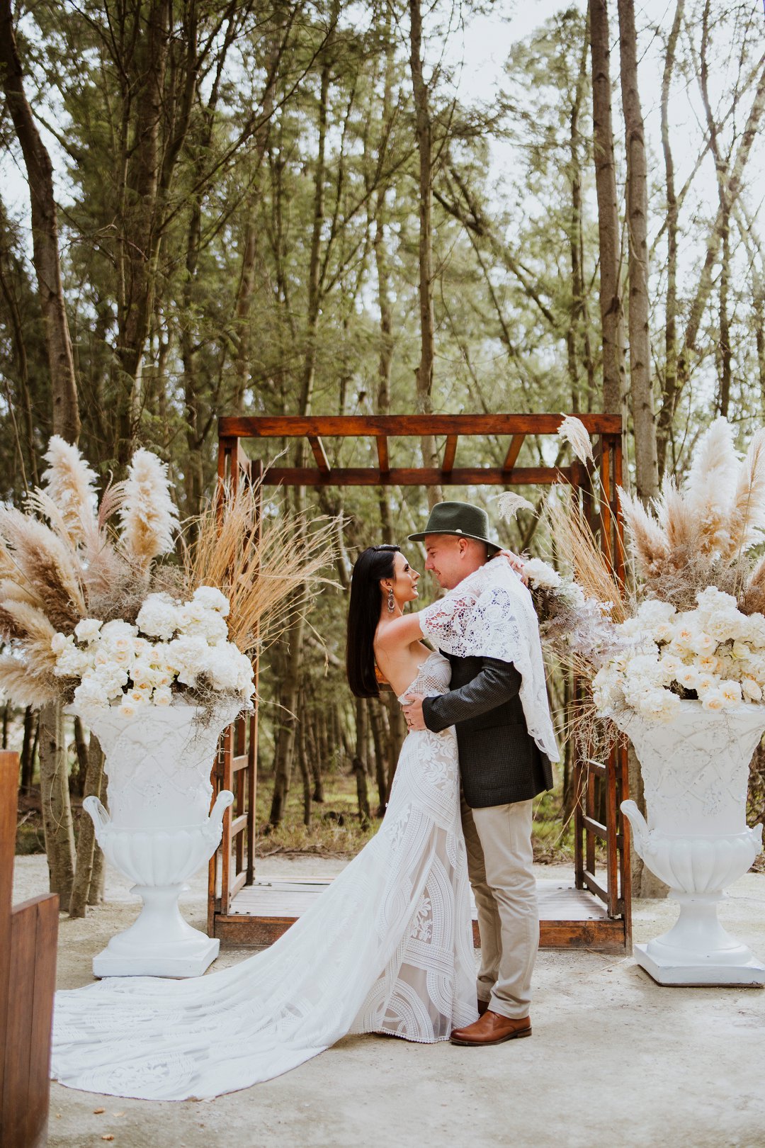 Rico en Elani kon na ses maande se langer geduld weens die KOVID-19 pandemie, uiteindelik aan mekaar trou beloof by hul klassieke boheemse woud troue.