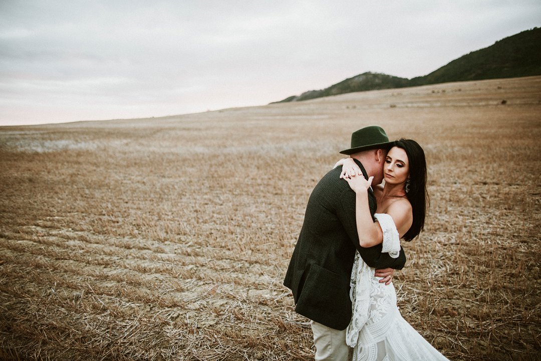 Rol af en geniet nou die klassieke boheemse woud troue van Rico en Elani.