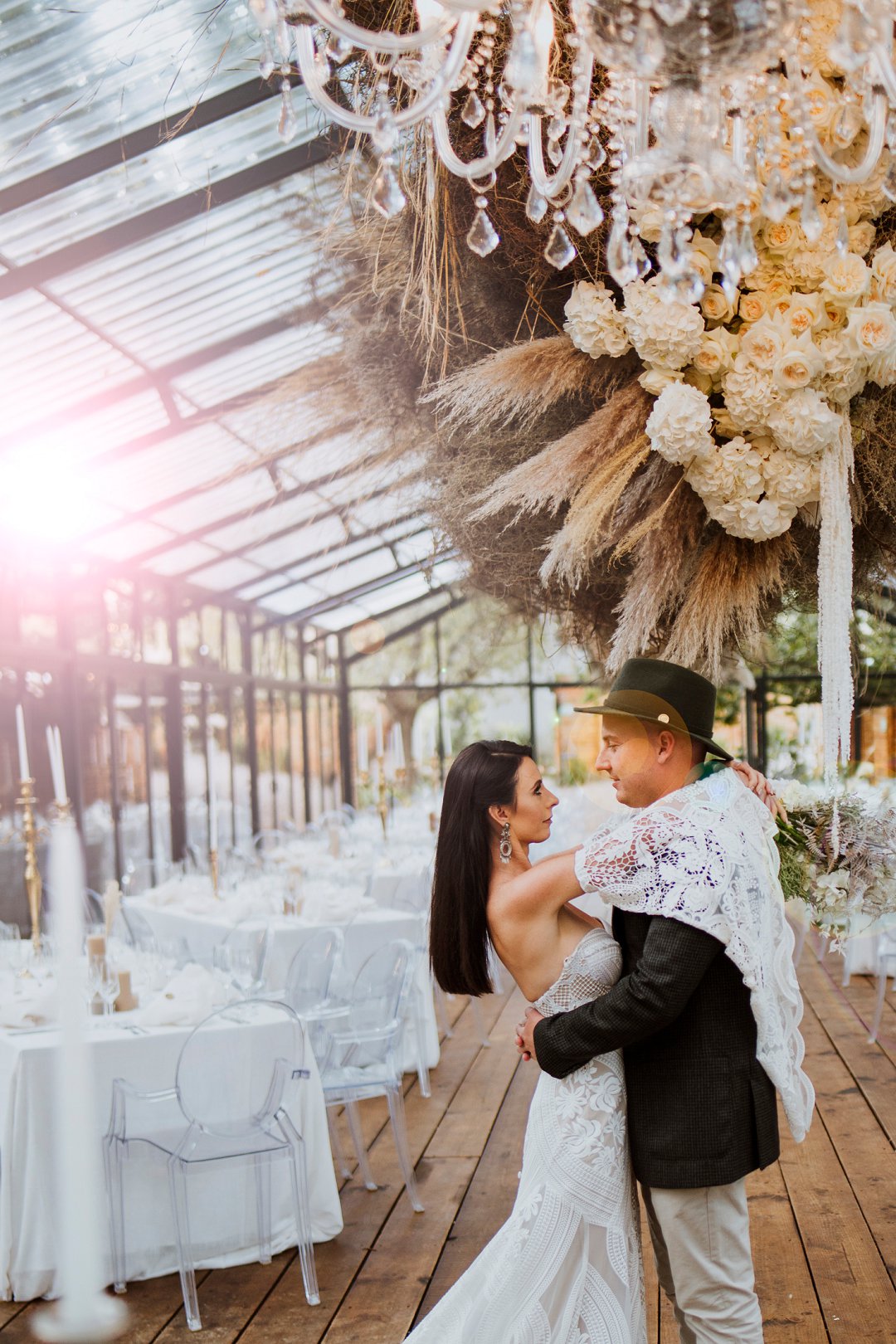Elani het die verantwoordelikheid op haarself geneem om hulle troudag te beplan, en sy het dit só geniet! ŠBoheemse tema kan soms té rustiek voorkom as dit nie heeltemal die gevoel is wat jy soek vir jou troudag nie. Elani het dit goed gedink om Šklassieke aspek hier by te voeg, om sodoende die tema meer elegant te laat vertoon.