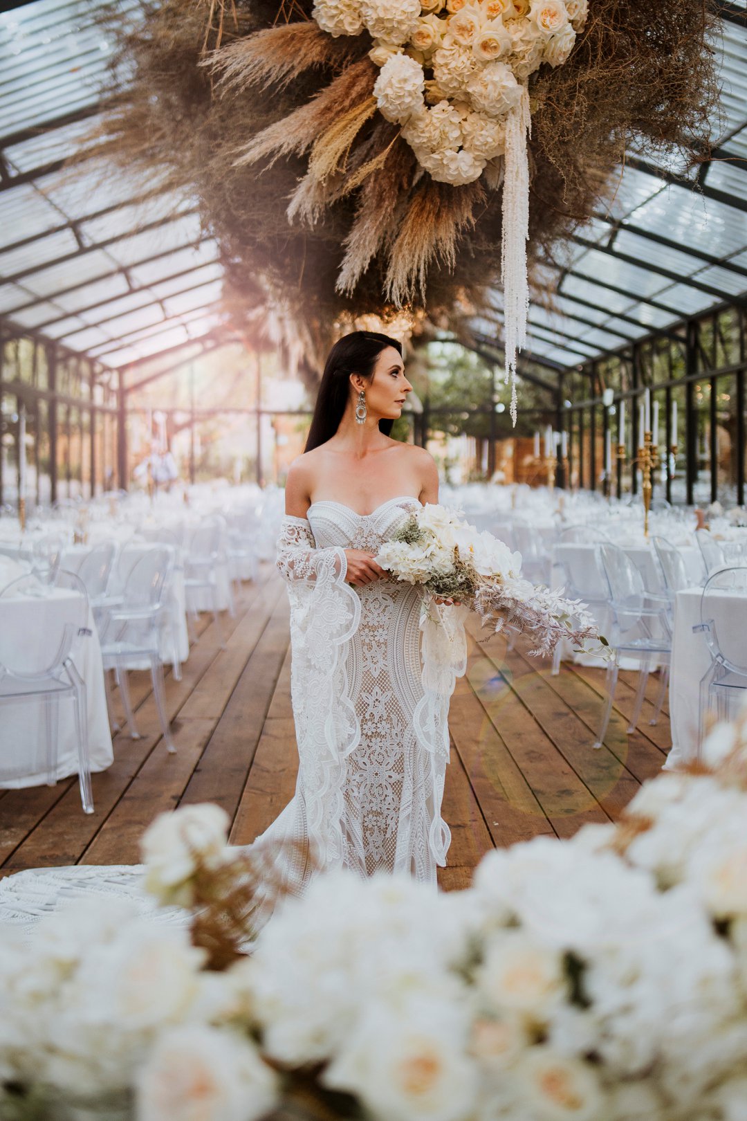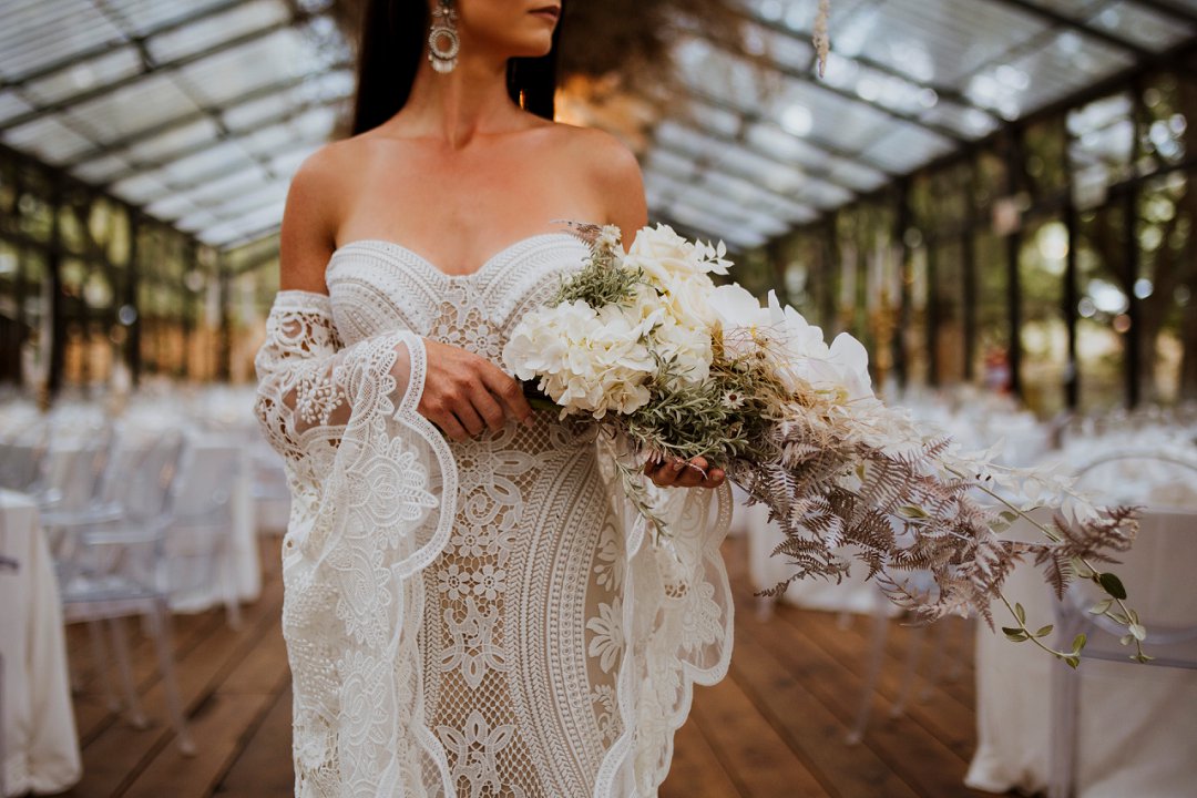 Omdat ons in die winter sou trou – wou ek Å winter “look” doen.Ā Gedroogte blomme, “nude”, wit, en neutraal met bietjie swart.Ā Steeds het ek volgehou met die “look” al was dit somer – en steeds het dit stunning gelyk! My rok was Å boheemse rok – ek wou boheems klasiek doen (met Rico se pak ook).Ā Nie te veel boheems nie, soms kan dit te veel wees – daarom het ek die klasiek ingebring.