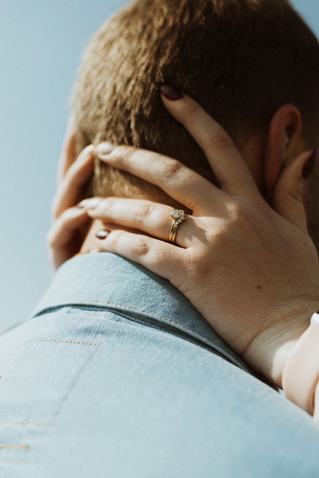 Ek dink ek het vir Jason mal gemaak met idees, maar oor twee dinge was ek altyd seker. Ek wou mog altyd graag ʼn goue, “solitaire setting” gehad het maar ek wou steeds hê dit moet uniek wees. Goue was nog altyd vir my so tydloos. Dus het hy die pandjie saam met die hoof steen gesit. As troupand sal daar nog ʼn ander pandjie aan die anderkant bykom. Ek is totaal verlief op my ring.