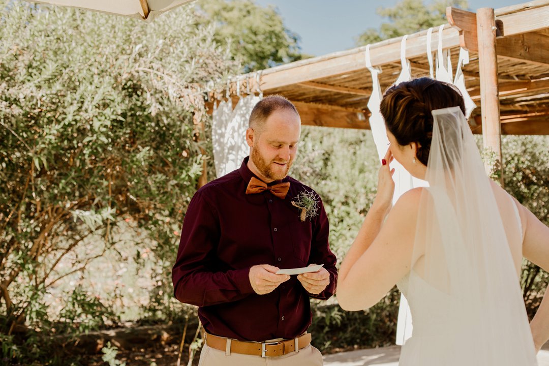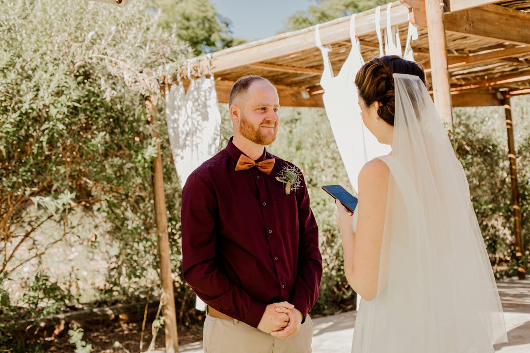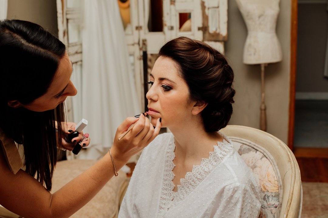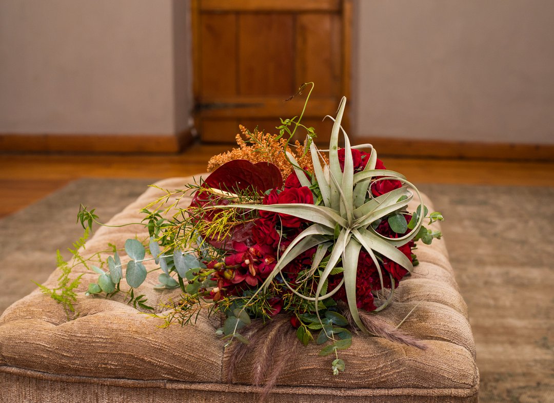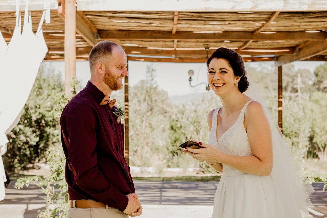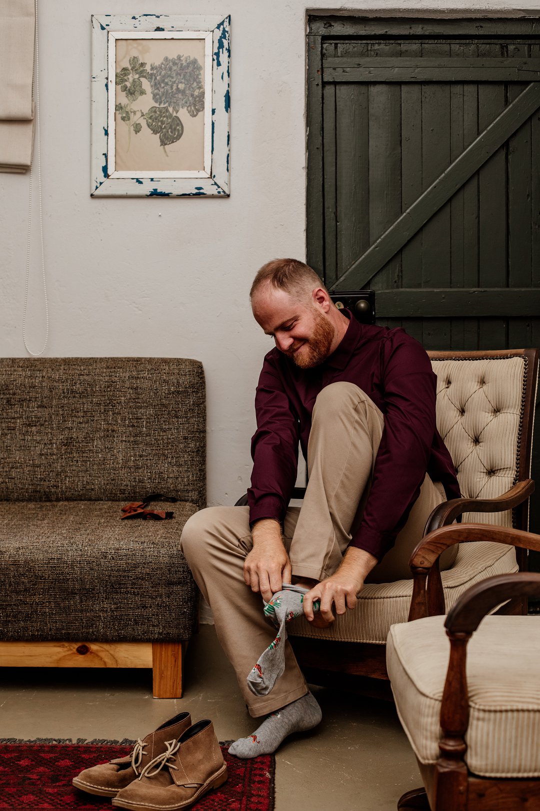 Die paartjie se onthaal was op die stoep wat uitkyk oor die rustige plaaslewe wat die trou venue omring. Met die tafel se rou hout tafel en die deurskynende stoele skep ʼn moderne gevoel. Dit pas so mooi in met die paartjie se Groen tema en tikseltjies Marsala kleure wat deur kom. Die paartjie het self hul trou blomme en dekor gedoen en ons dink dit lyk baie mooi gedoen!