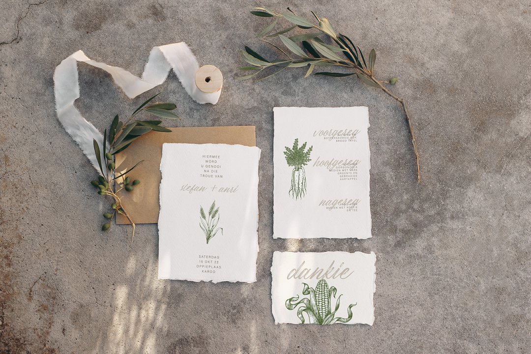 Jy kan kies en keur tussen honderde verskillende trou uitnodigings, spyskaarte, naam kaartjies en vele ander items. Indien jy opsoek is na skryfbehoefte ontwerpers wat Mooi Troues aanbeveel, klik hier om ons Trougids te besoek.